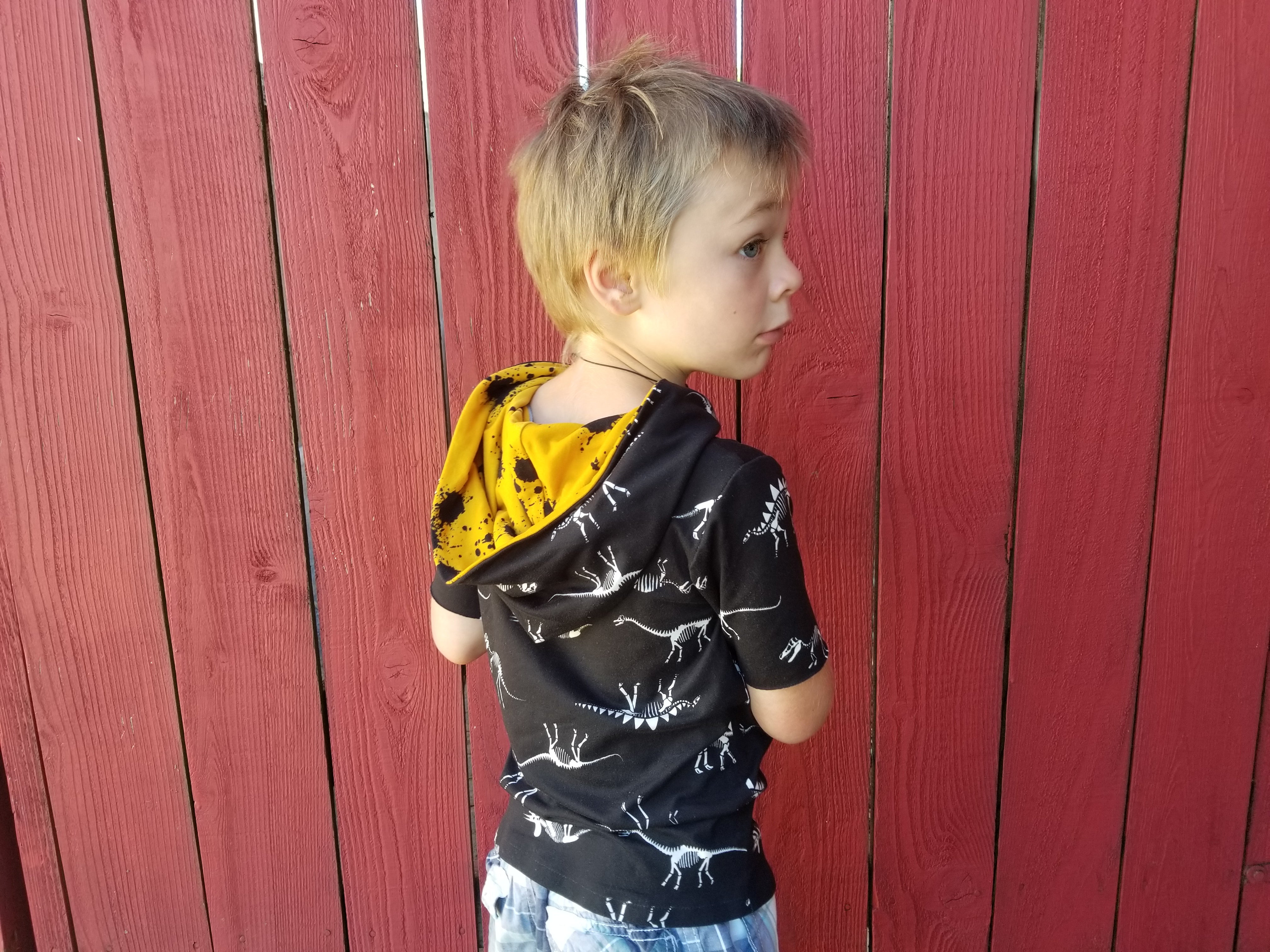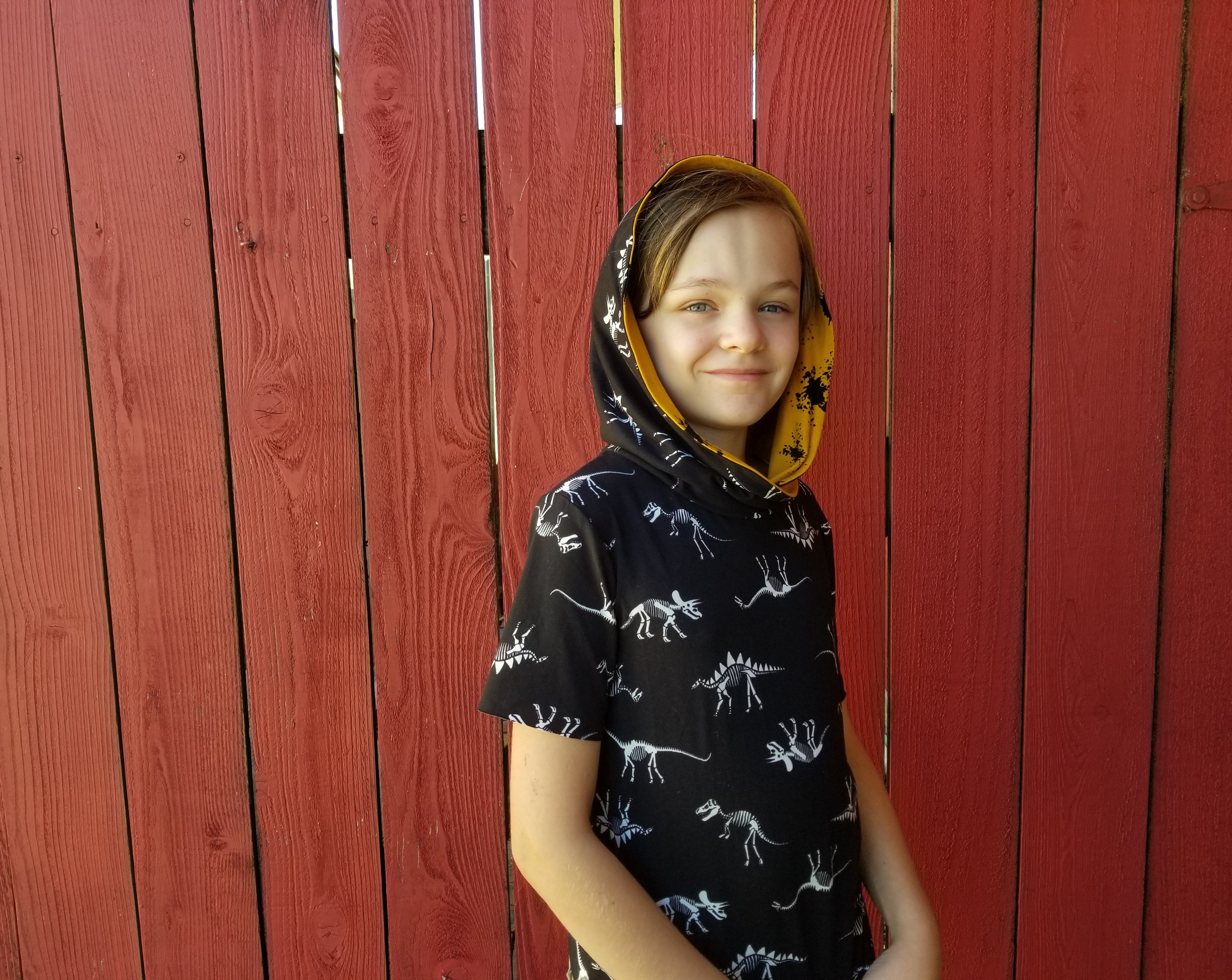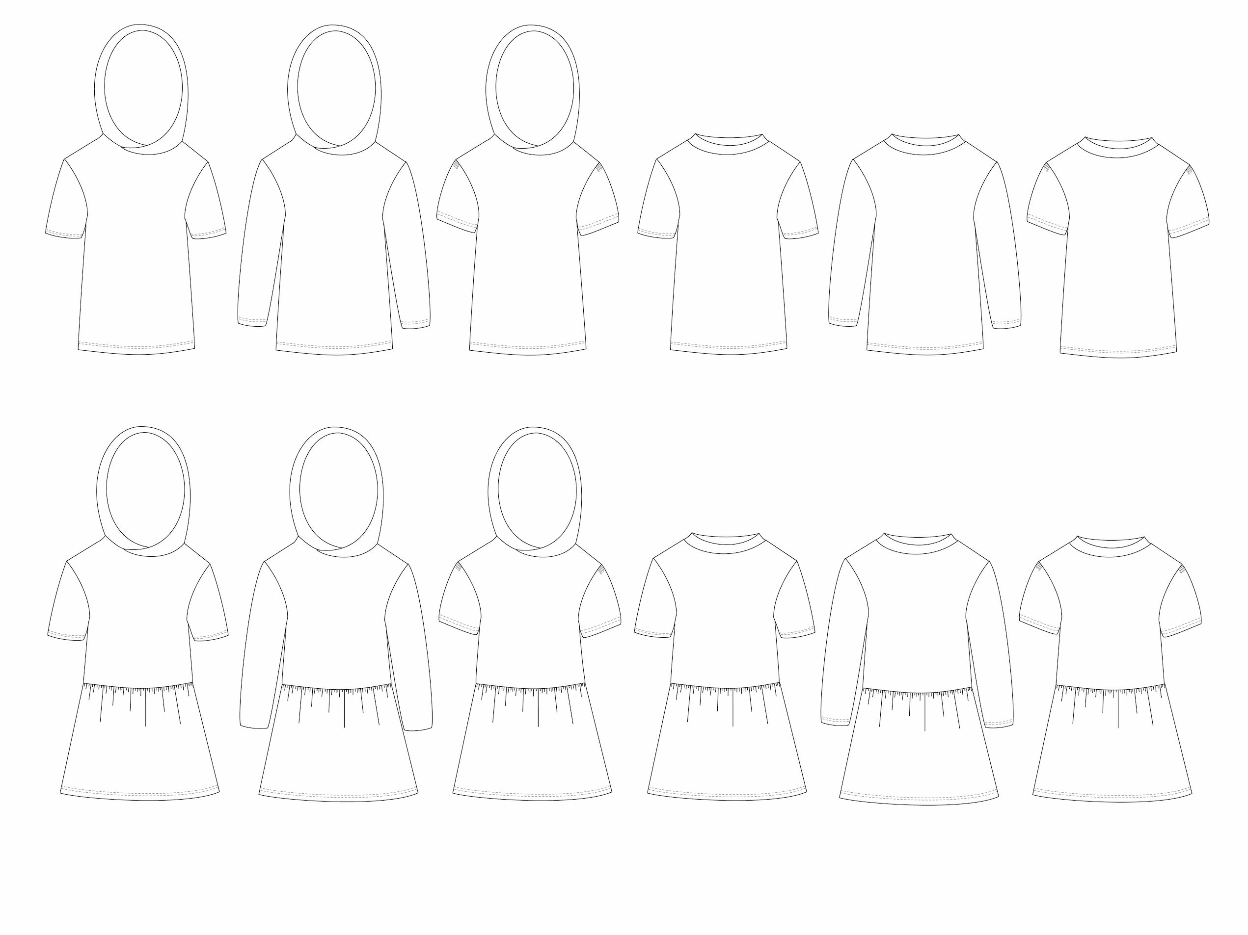 The Eclipse sewing pattern is an amazingly versatile child T-Shirt and Dress pattern. There are options for for both t-shirt and dresses with long sleeves, short sleeves, gathered sleeves and a self-lining cross over hood.