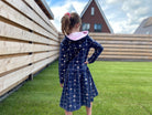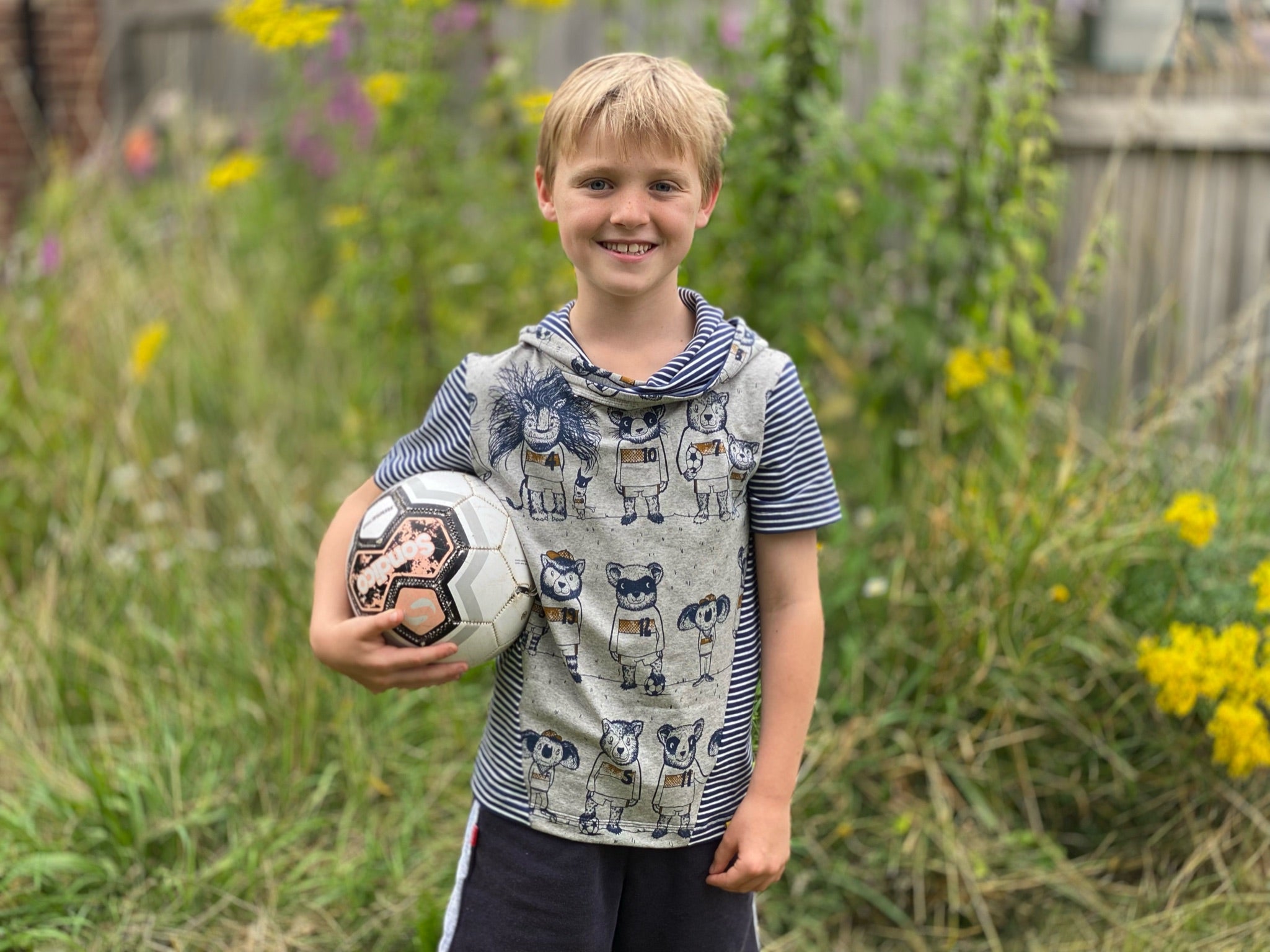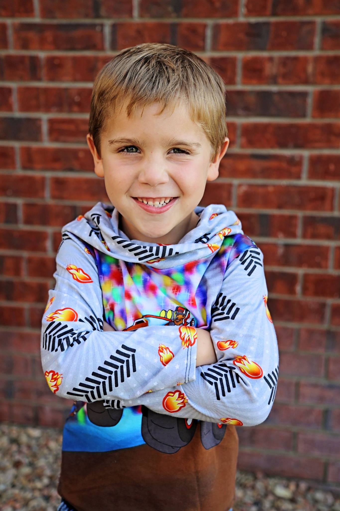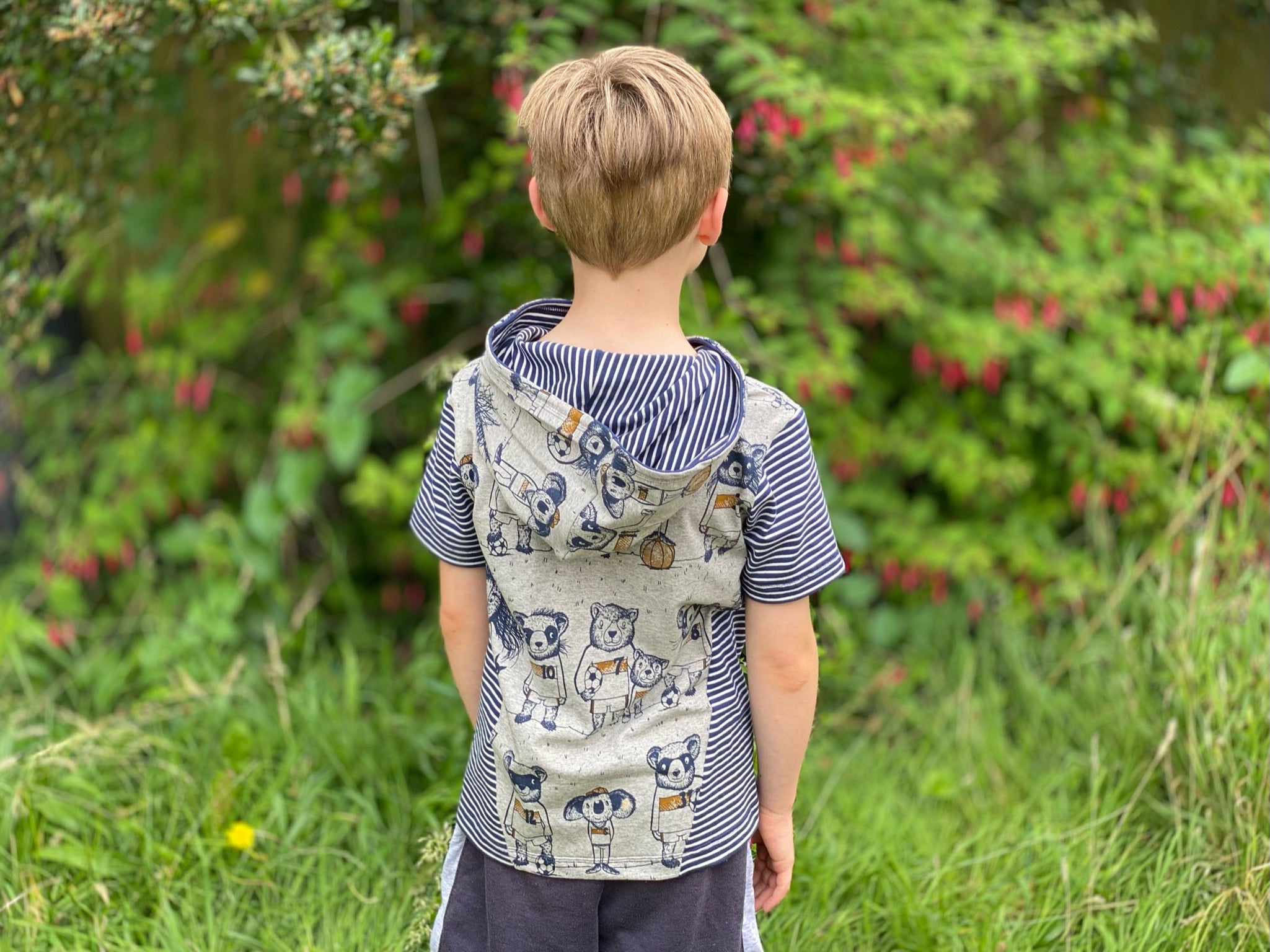 The Eclipse sewing pattern is an amazingly versatile child T-Shirt and Dress pattern. There are options for for both t-shirt and dresses with long sleeves, short sleeves, gathered sleeves and a self-lining cross over hood.