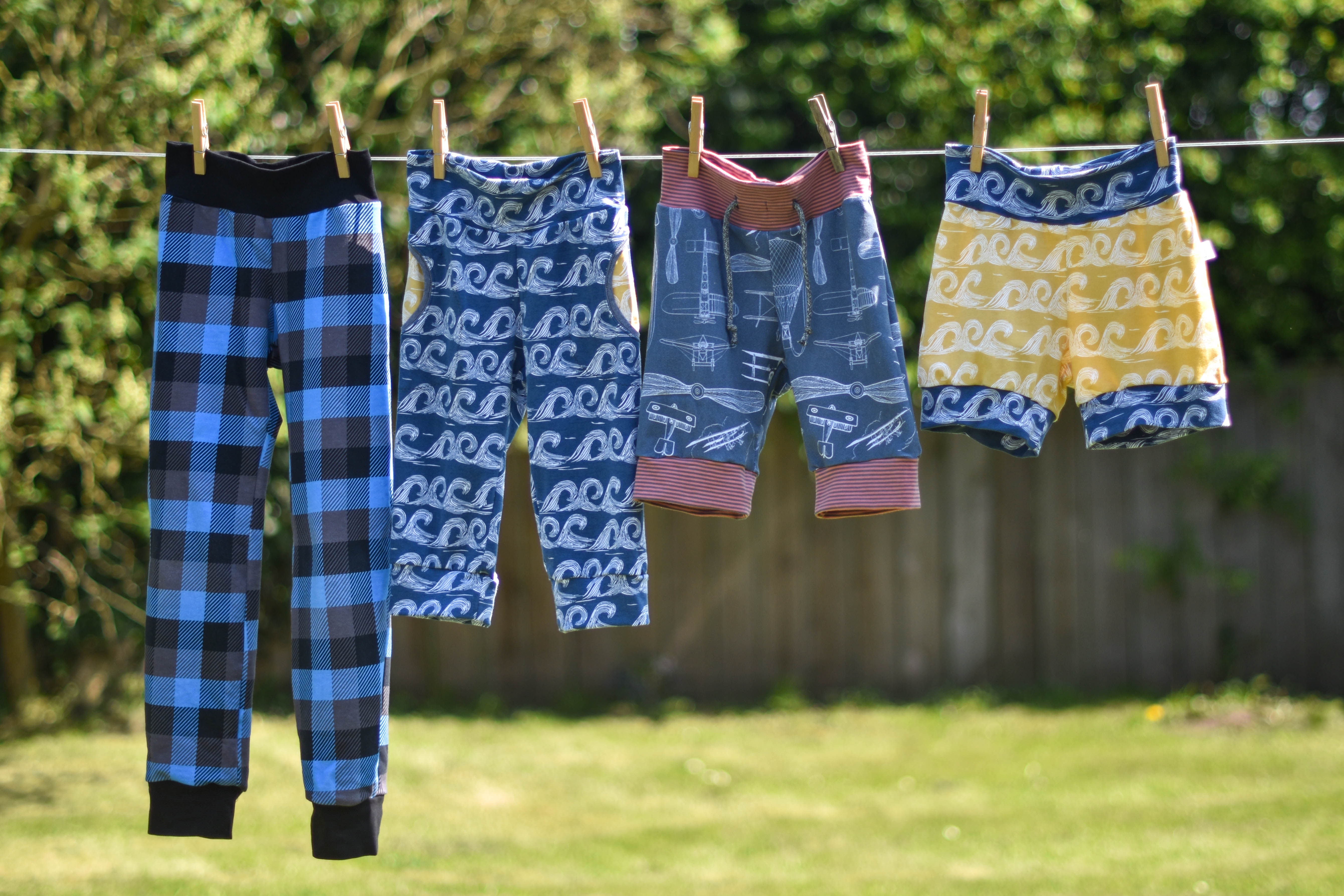 The Child Four Seasons Joggers pattern is a pattern to take you right through the whole year! It is a casual jersey pattern with 4 lengths to choose from: shortie, knee length, capri and full length. Additionally you can choose from a regular jersey waistband or a double height fold over waistband. Finally, you can add a faux drawstrings and two pocket sizes.