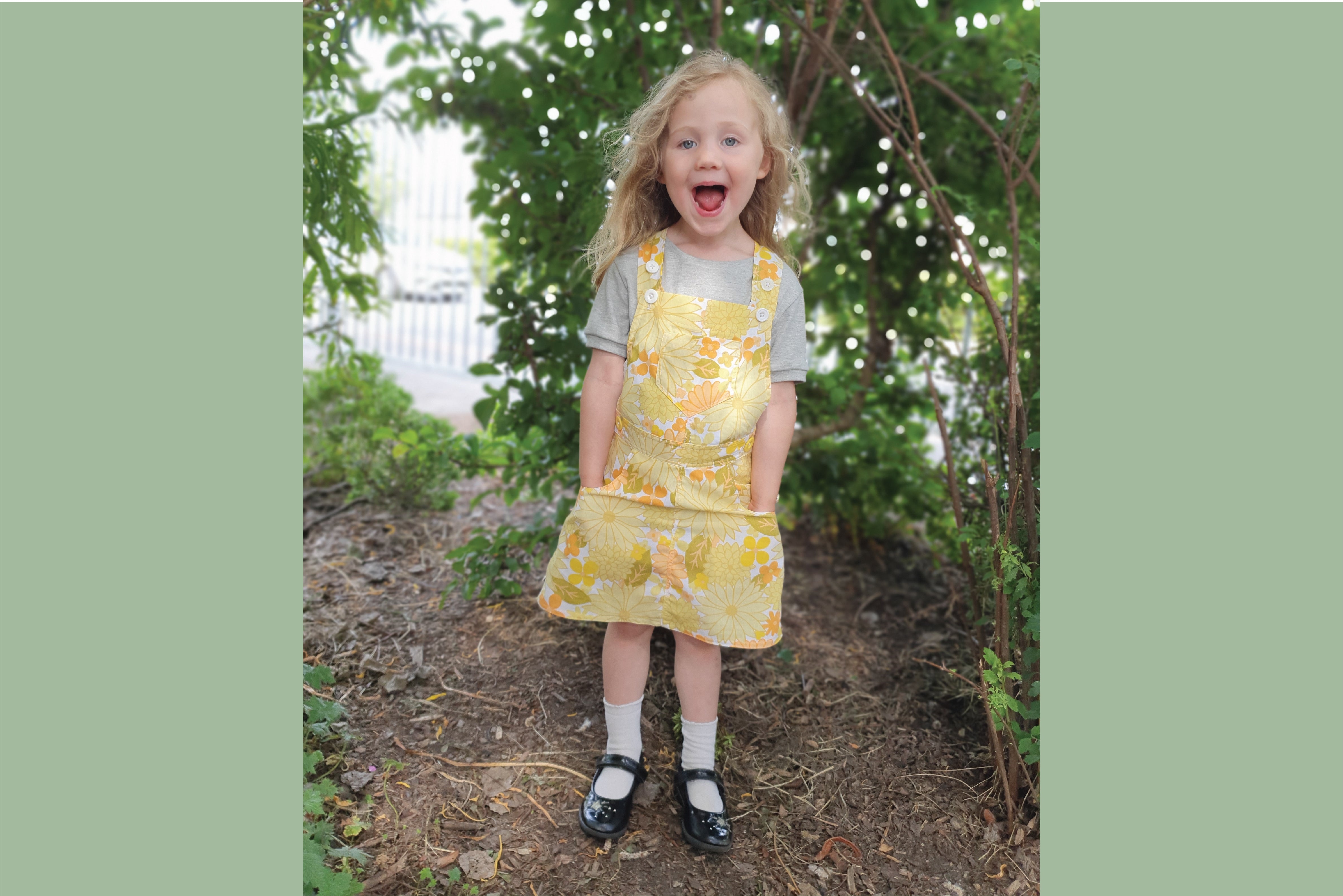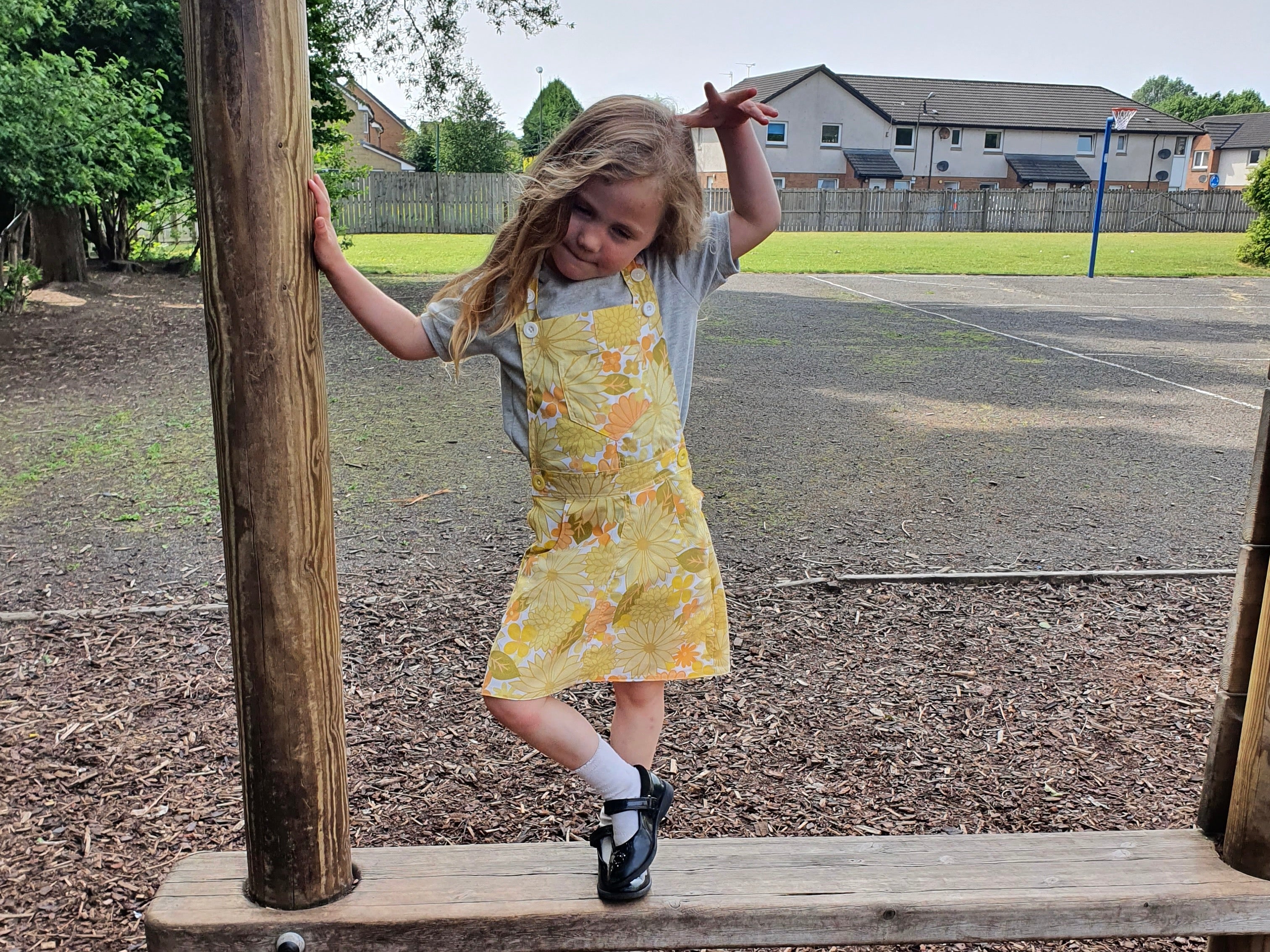 The I Dig Dungarees pattern is a traditional ‘bib and braces’ dungaree (overall) pattern. It has options for long legs, shorts and a skirt. You can choose between traditional clips and stud buttons, or regular button and button holes.