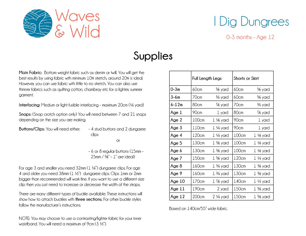 Waves & Wild Children's I Dig Dungarees - PDF sewing pattern