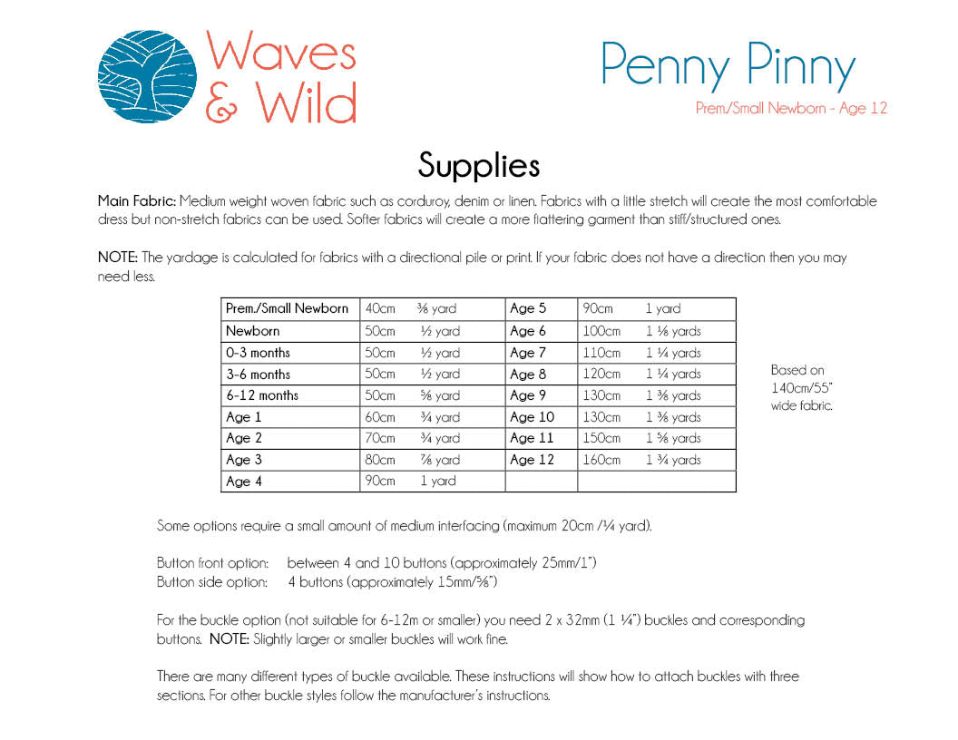 This Penny Pinny pattern goes from Prem./Small Newborn right up to Age 12.
