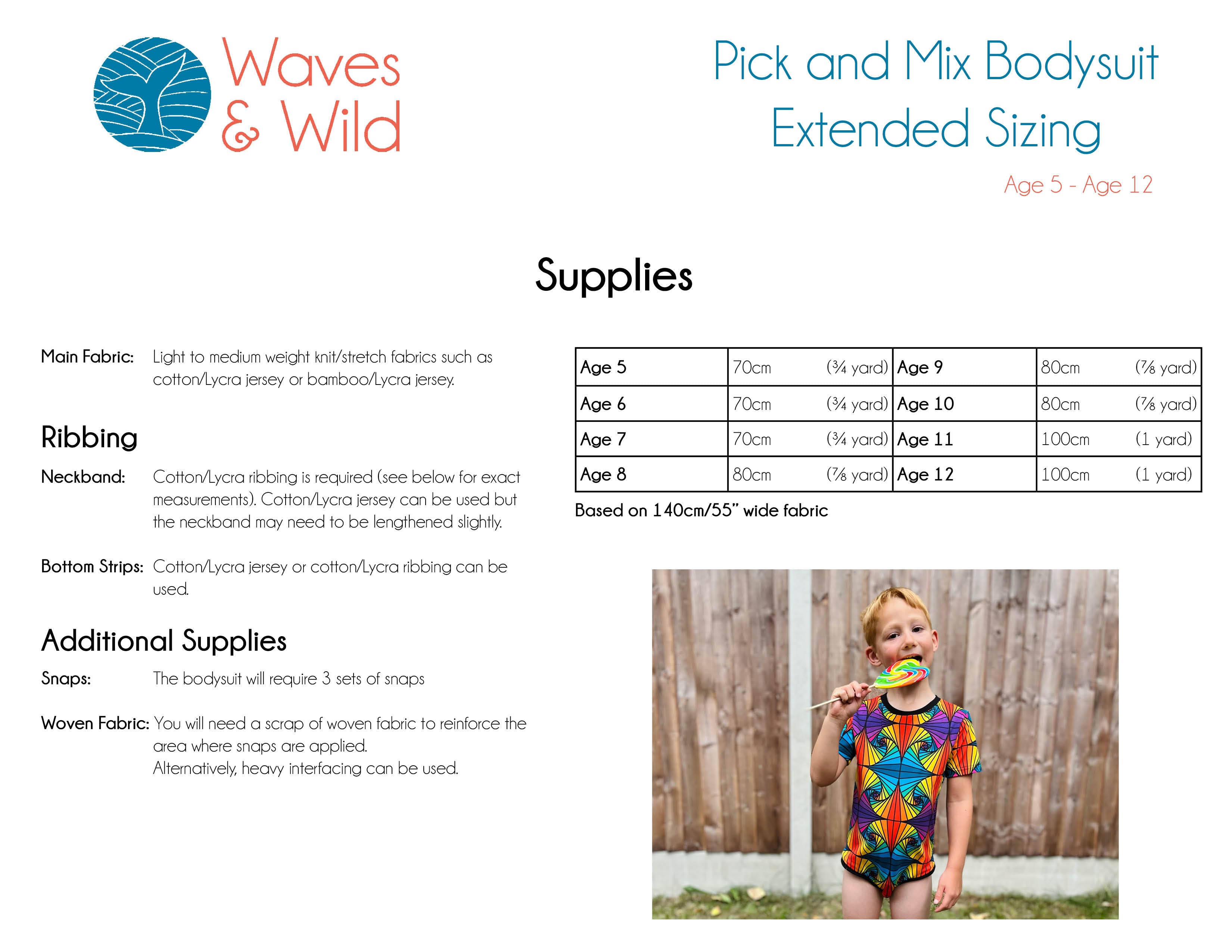 Waves & Wild Children's Pick and Mix Bodysuit Extended Sizing - PDF sewing pattern