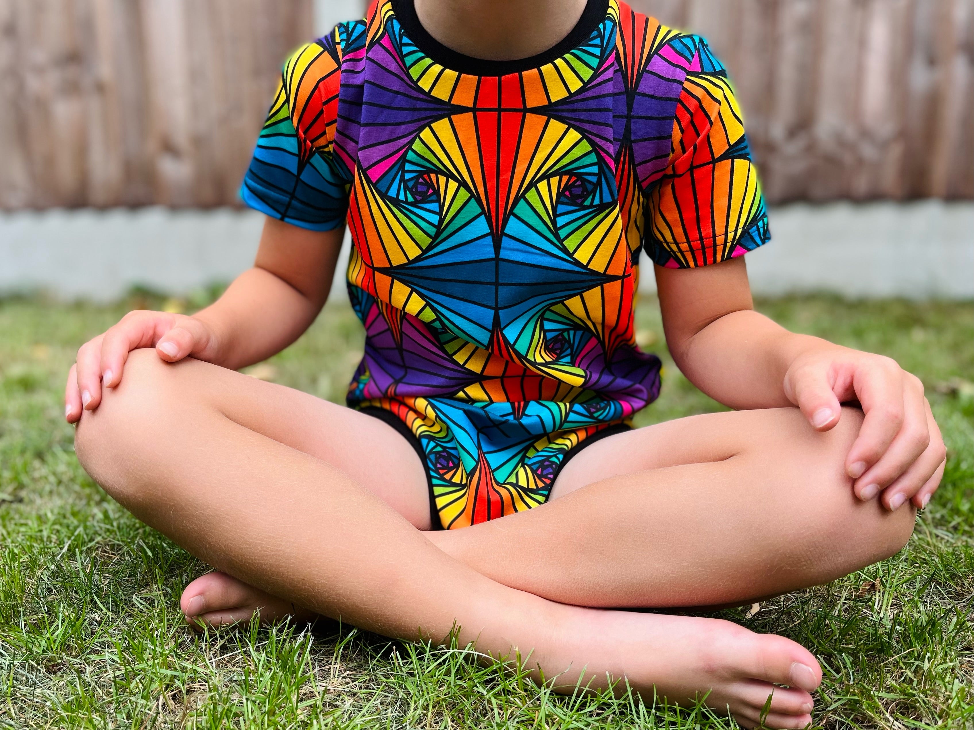 The Pick and Mix Bodysuit (extended sizing) is perfect for any child that feels most comfortable with a t-shirt that can’t come untucked! In particular, it was designed for children who are wheelchair users (no bunching behind the back!) or who wear nappies/pads (either cloth or disposable).