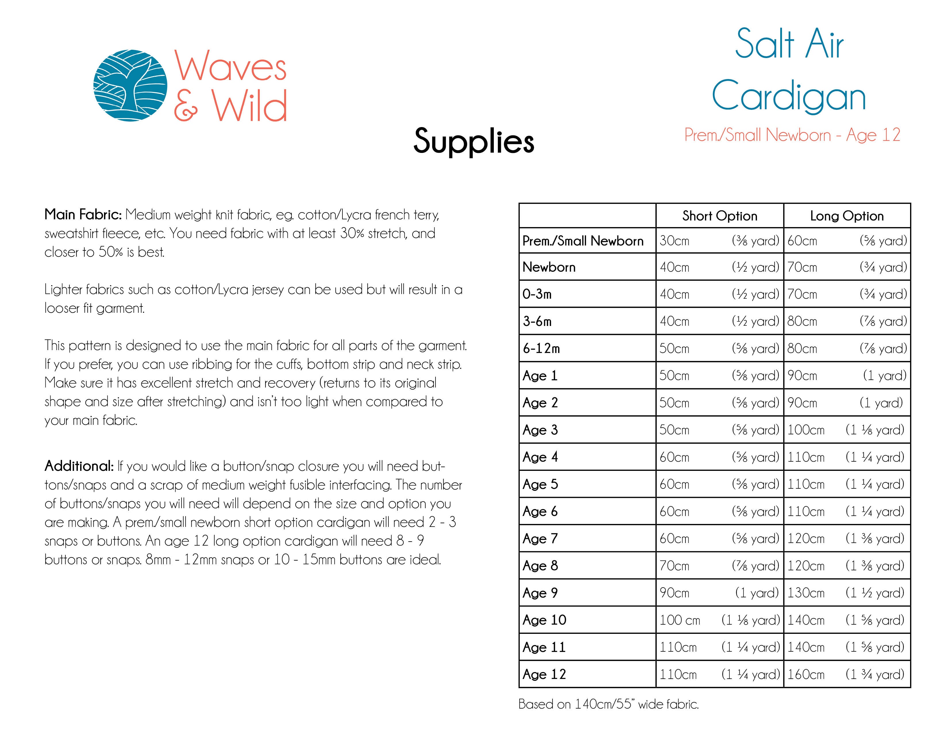 The Salt Air Cardigan is designed for mid-weight knit (stretch) fabrics such as French terry.