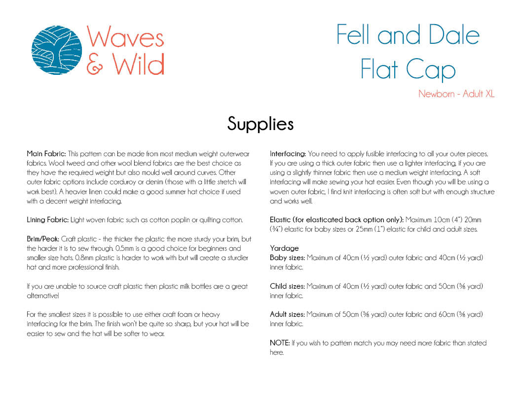 Waves & Wild Fell and Dale Flat Cap - PDF sewing pattern