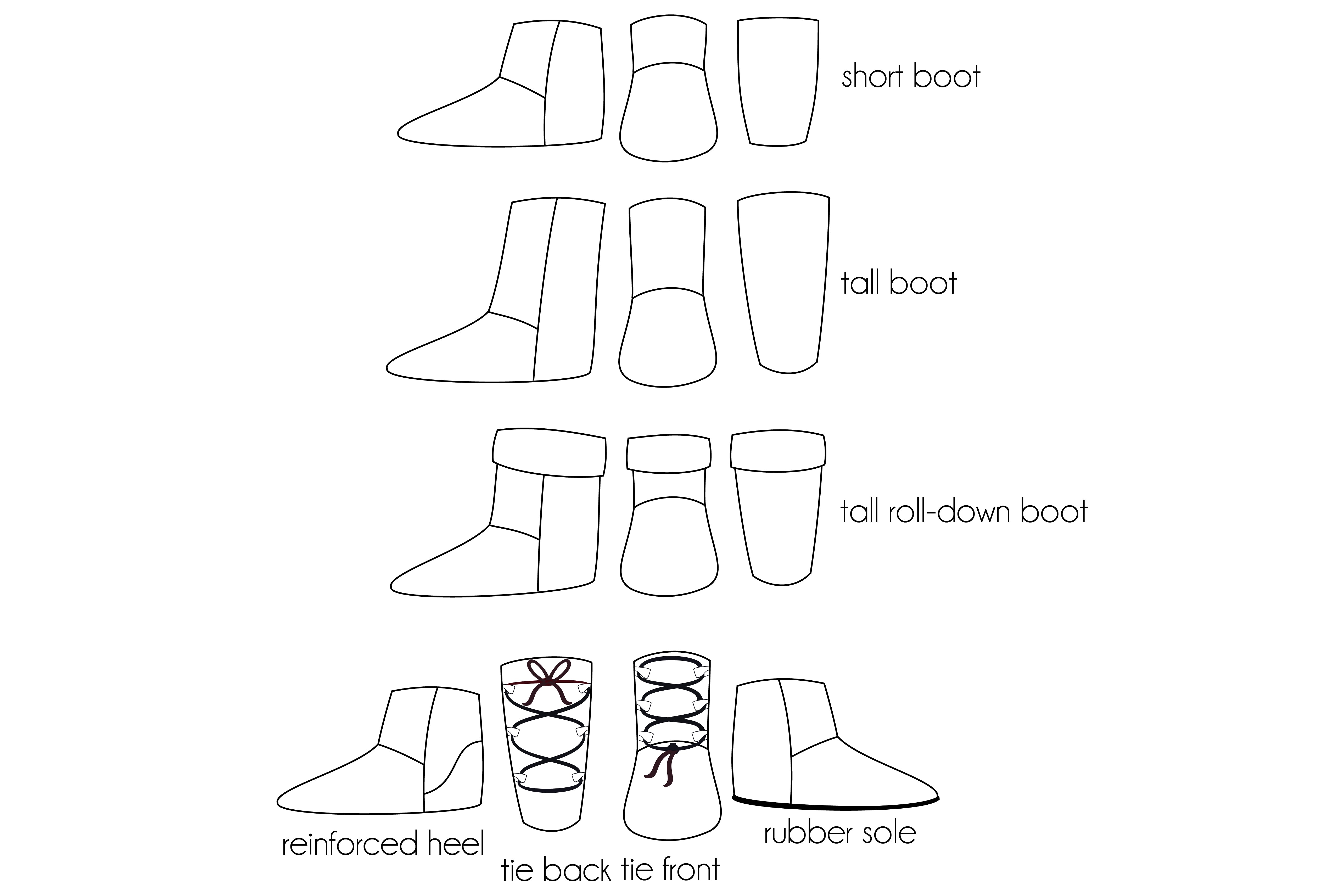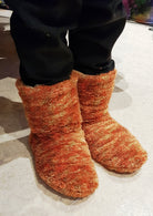 The Fireside slippers are a warm and cosy, boot-style slipper. Choose between two height options. Additionally you can add a reinforced heel and additional ties. There are instructions to guide you through several sole choices. This pattern is suitable for enthusiastic beginners.