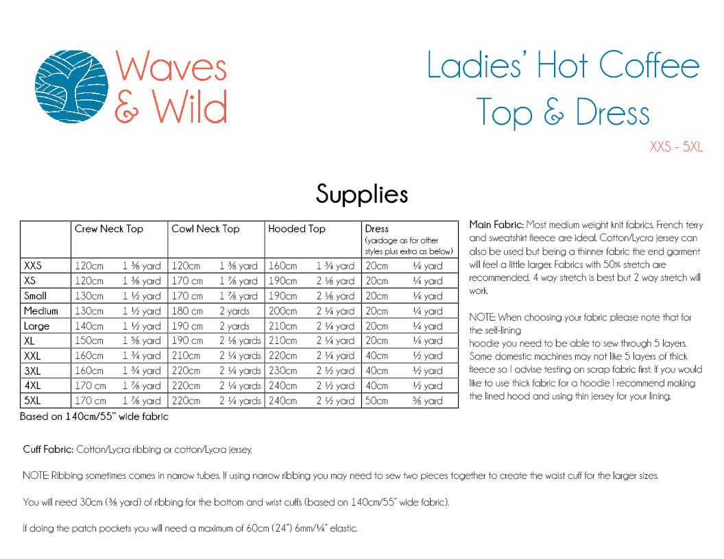 For more photos, inspiration and assistance you are very welcome to join the Waves & Wild Facebook Group. Find the measurements charts for all Waves and Wild patterns here.