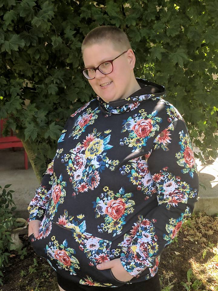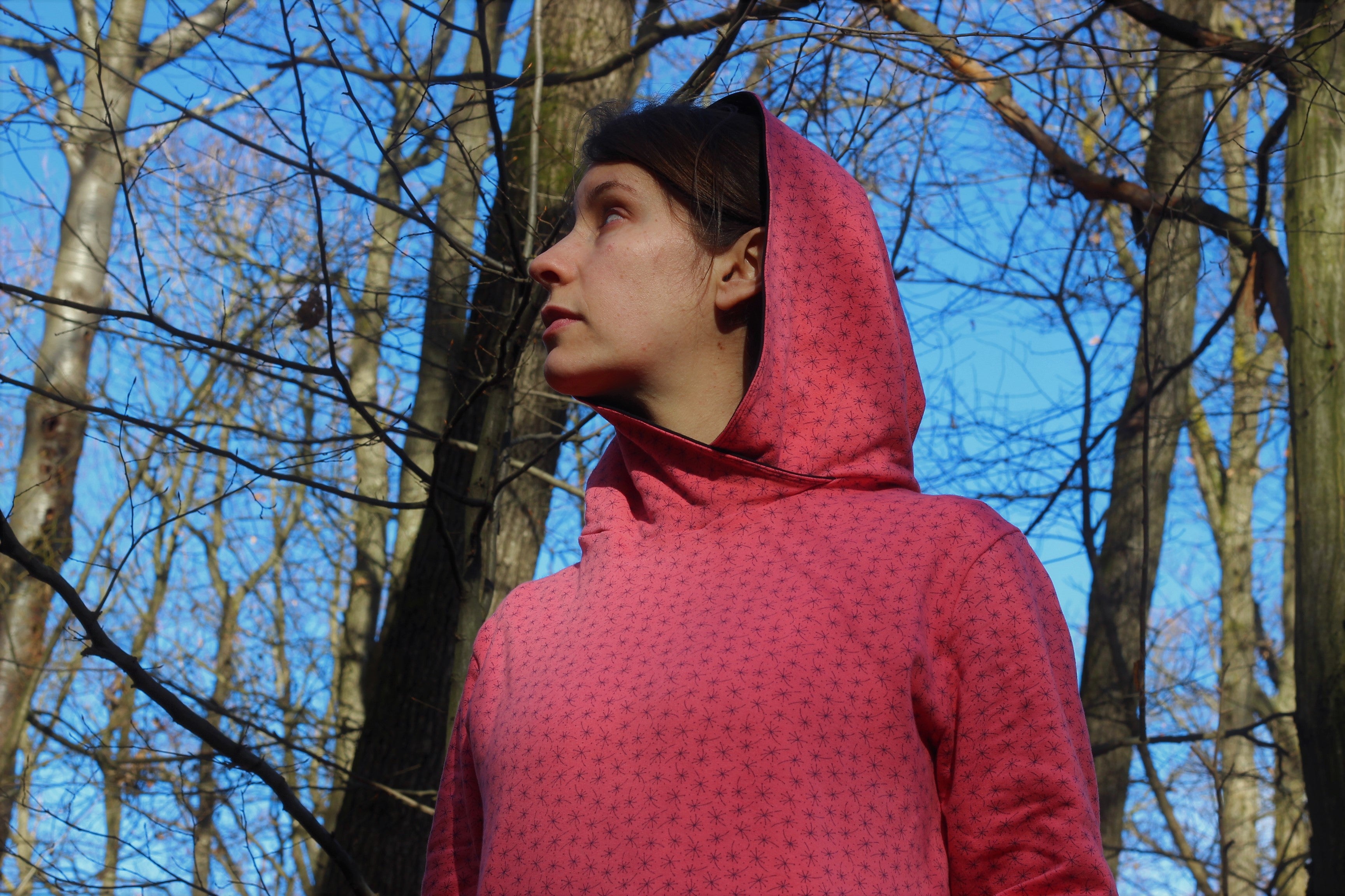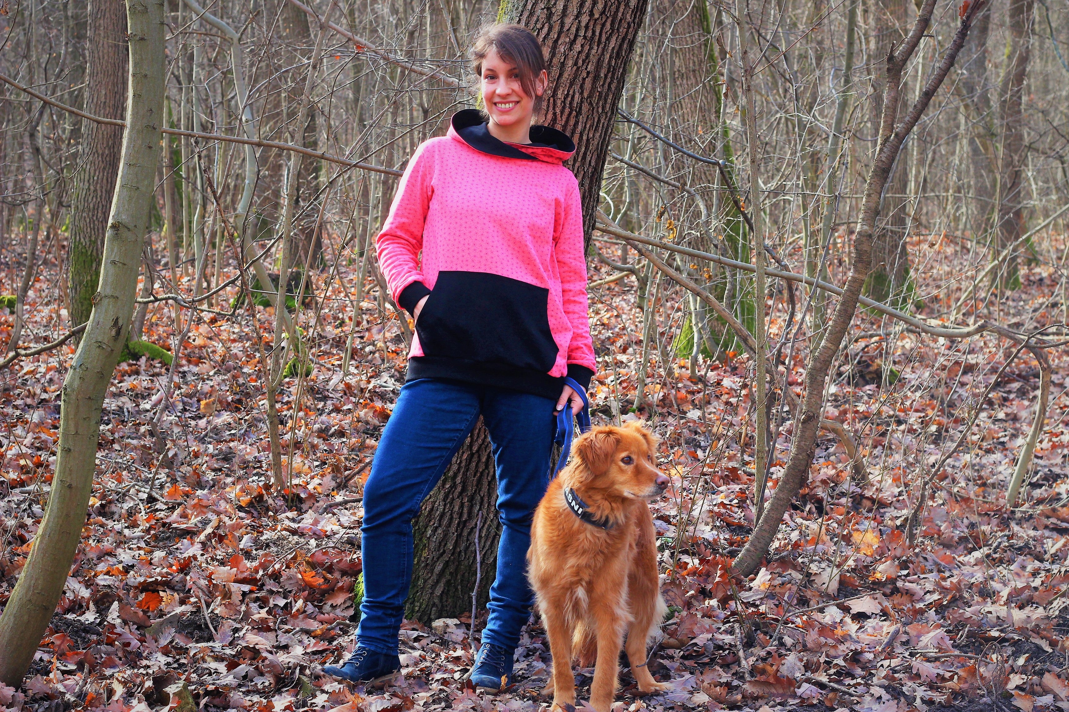 It is suitable for enthusiastic beginners. Medium weight knit fabrics (for example French terry or sweatshirt fleece) are perfect for this pattern.