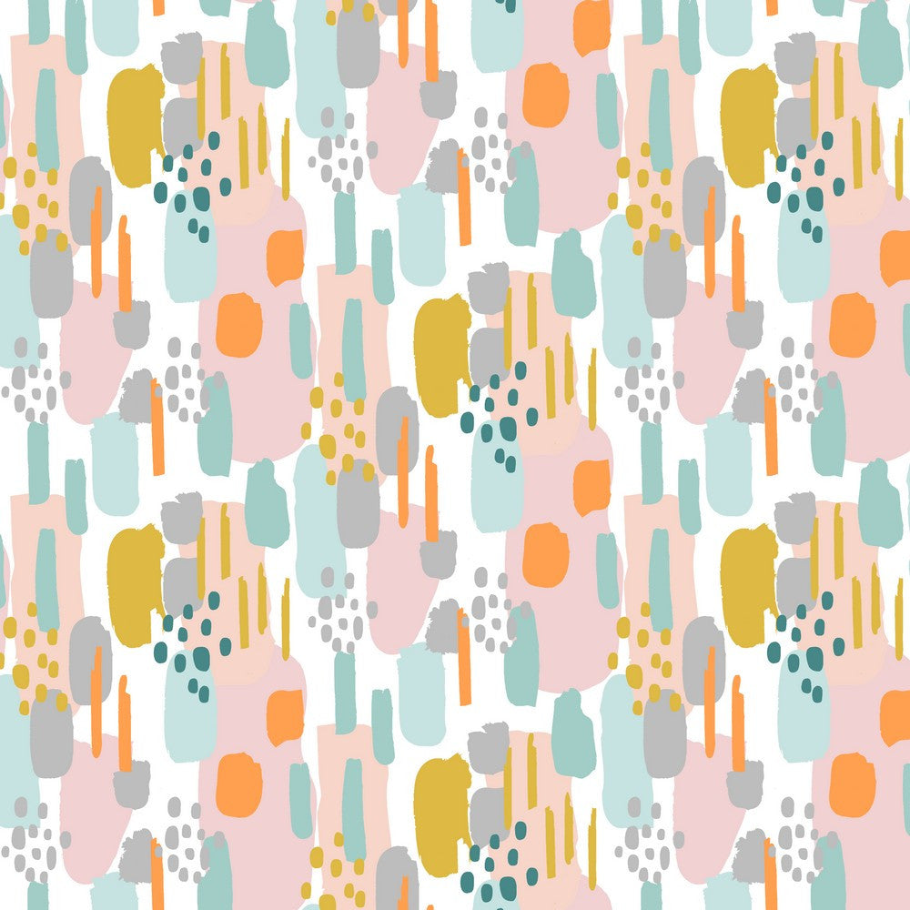 This sweatshirting is super soft on the back for ultimate comfort, and has a lovely 2 way stretch, making it ideal for comfortable clothing like hoodies and trousers. This fun abstract design features an array of brushstrokes and dots in gorgeous pastel tones, all set off on a fresh white background to make the colours pop!
