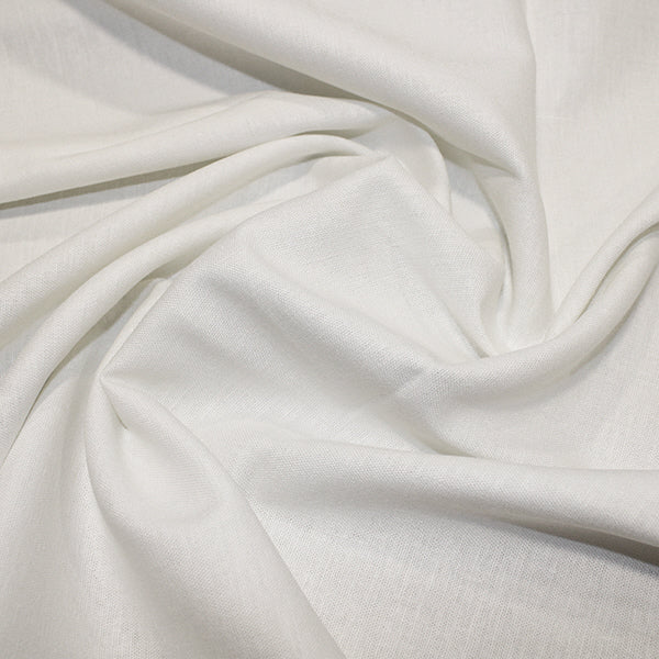 Make gorgeous warm-weather garments with this comfortable linen. In a classic white shade that isn't too see-through, it has a lovely surface texture we associate with linen, mixed with the drape and airiness of viscose for the perfect warm weather fabric. The touch of stretch offers extra comfort in garments and the medium weight is ideal for things like trousers, shorts, tops and dresses.