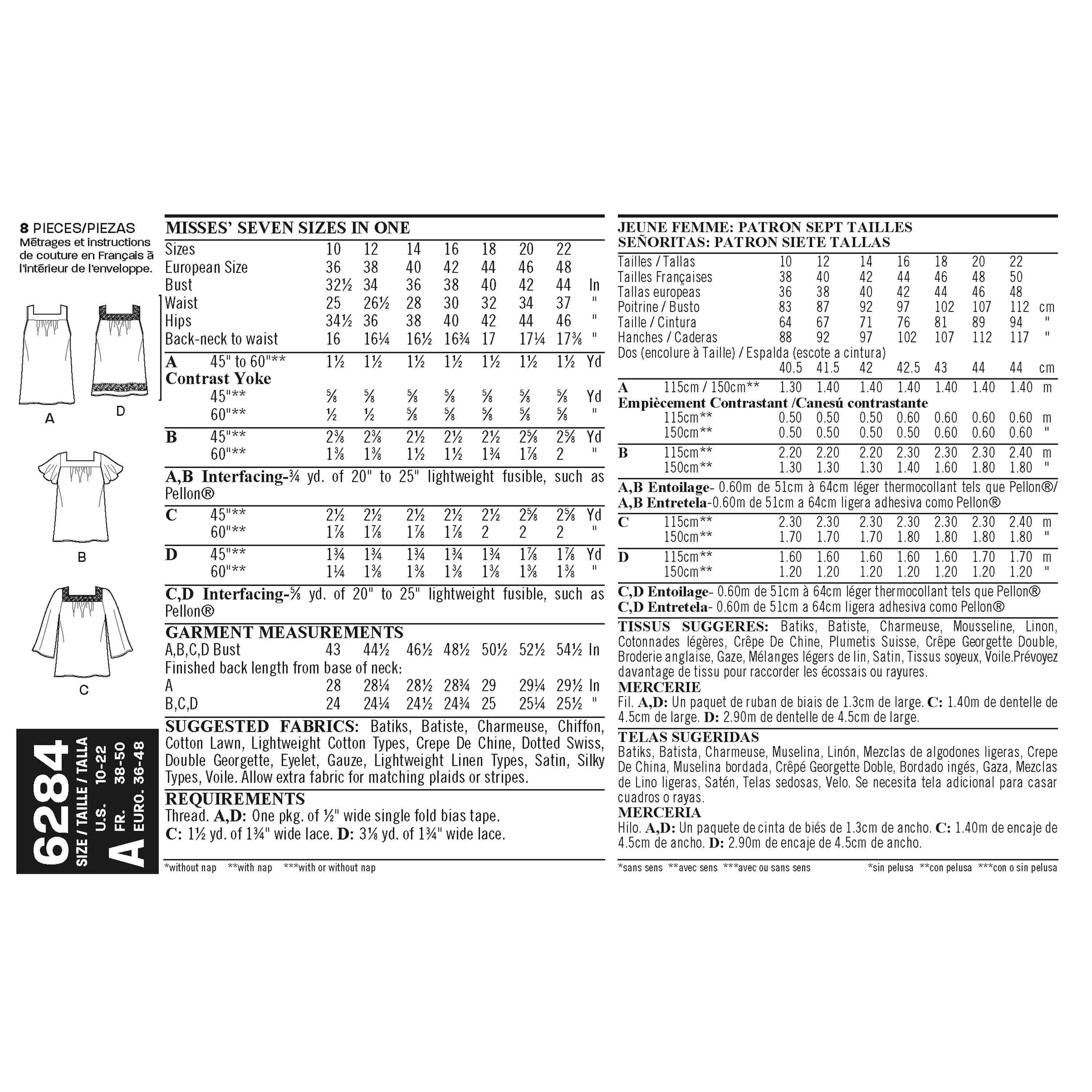 - Sizes A (10-12-14-16-18-20-22)