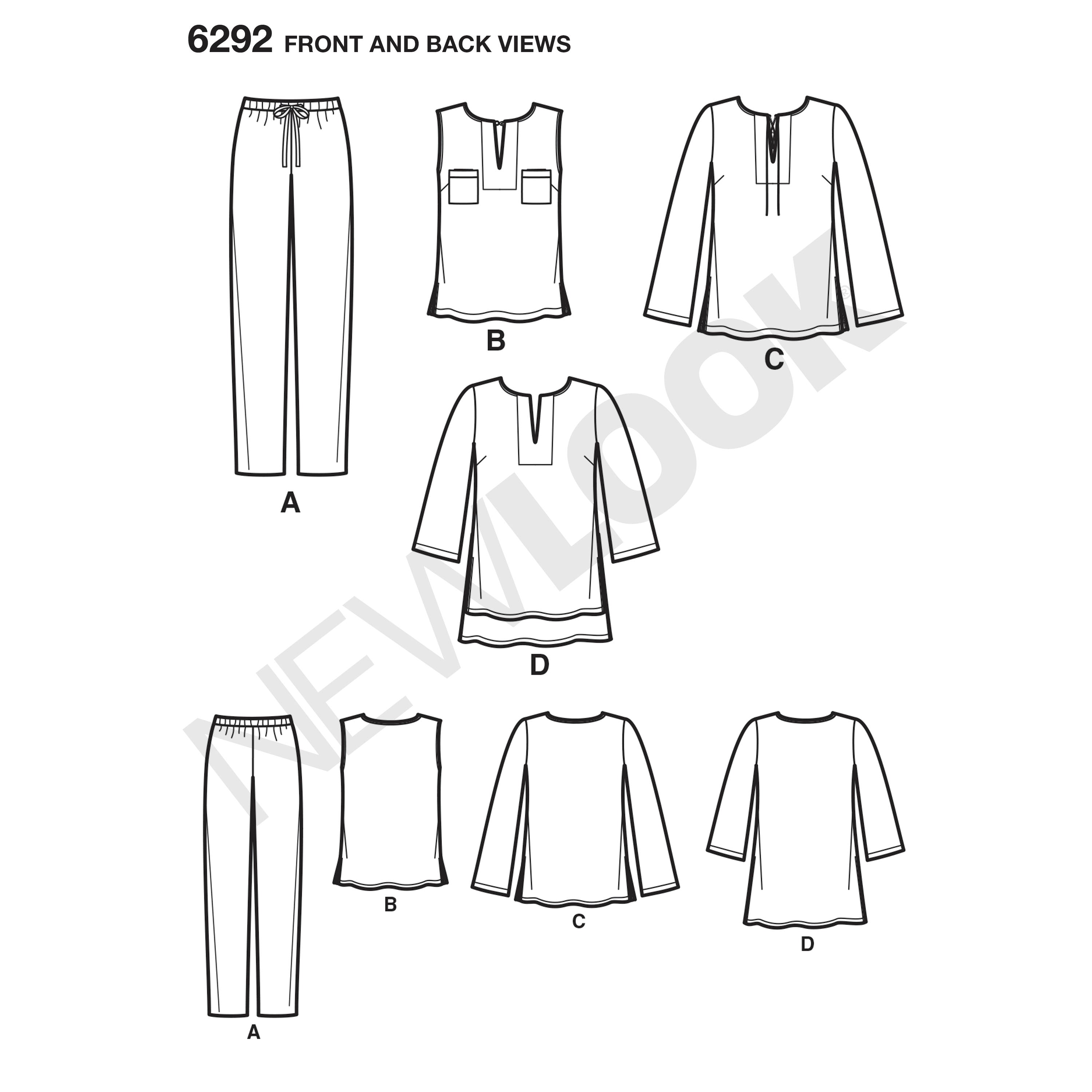 New Look Sewing Pattern 6292 - Misses' Tunic or Top and Pull-on Pants
