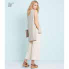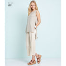 This easy sportswear pattern works great in knit fabrics. Pattern includes tee shirt, cropped tank with slit and ties or high low tunic with long slits, and pull on cropped pants.