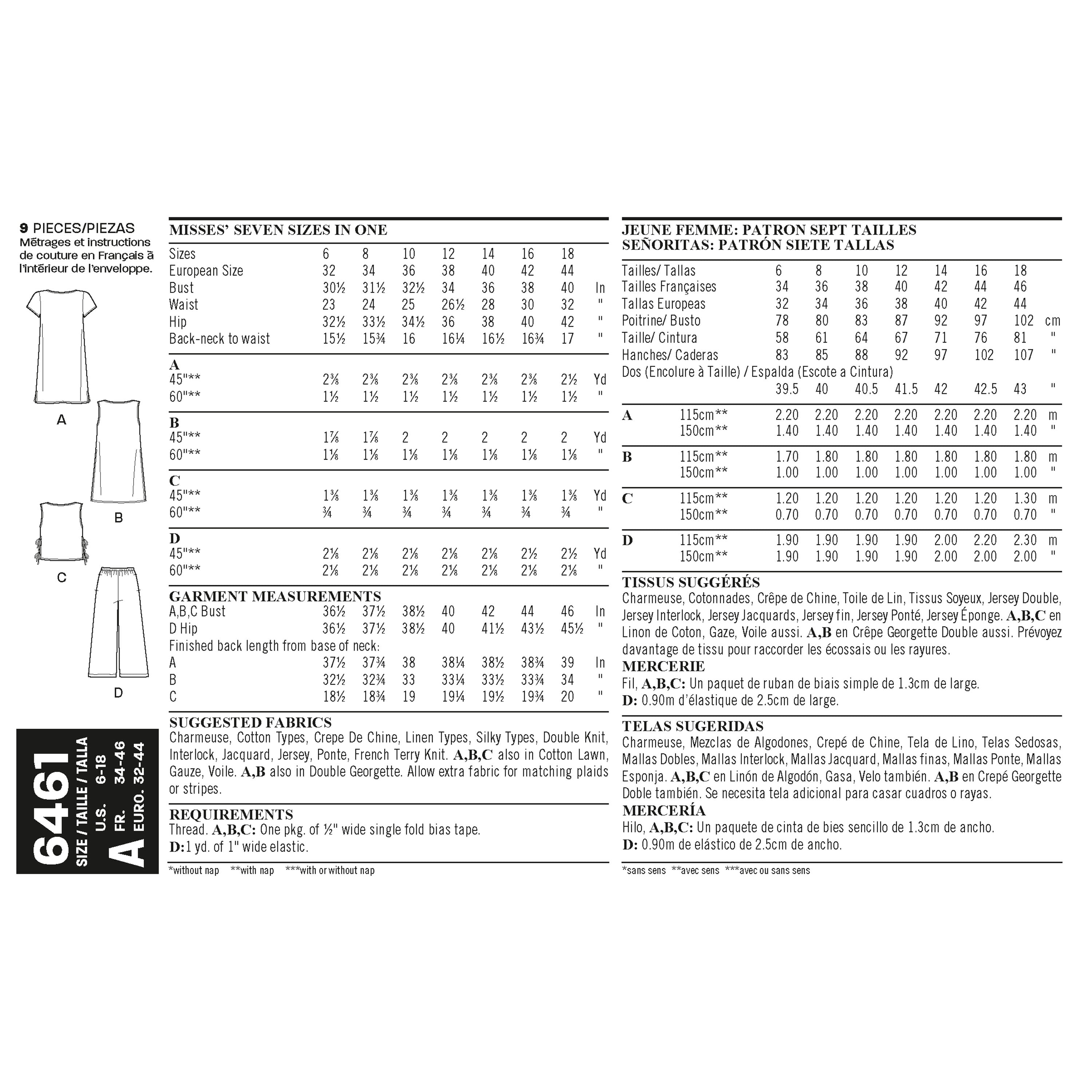 New Look Sewing Pattern 6461 - Misses' Dress, Tunic, Top and Cropped Pants