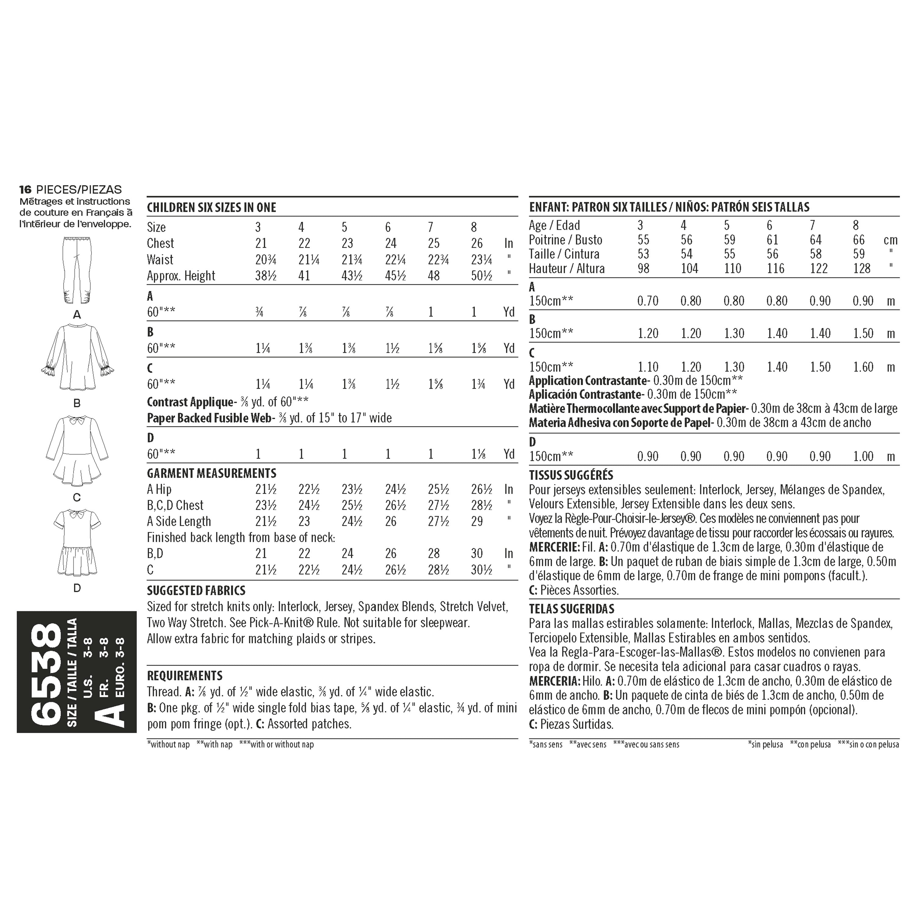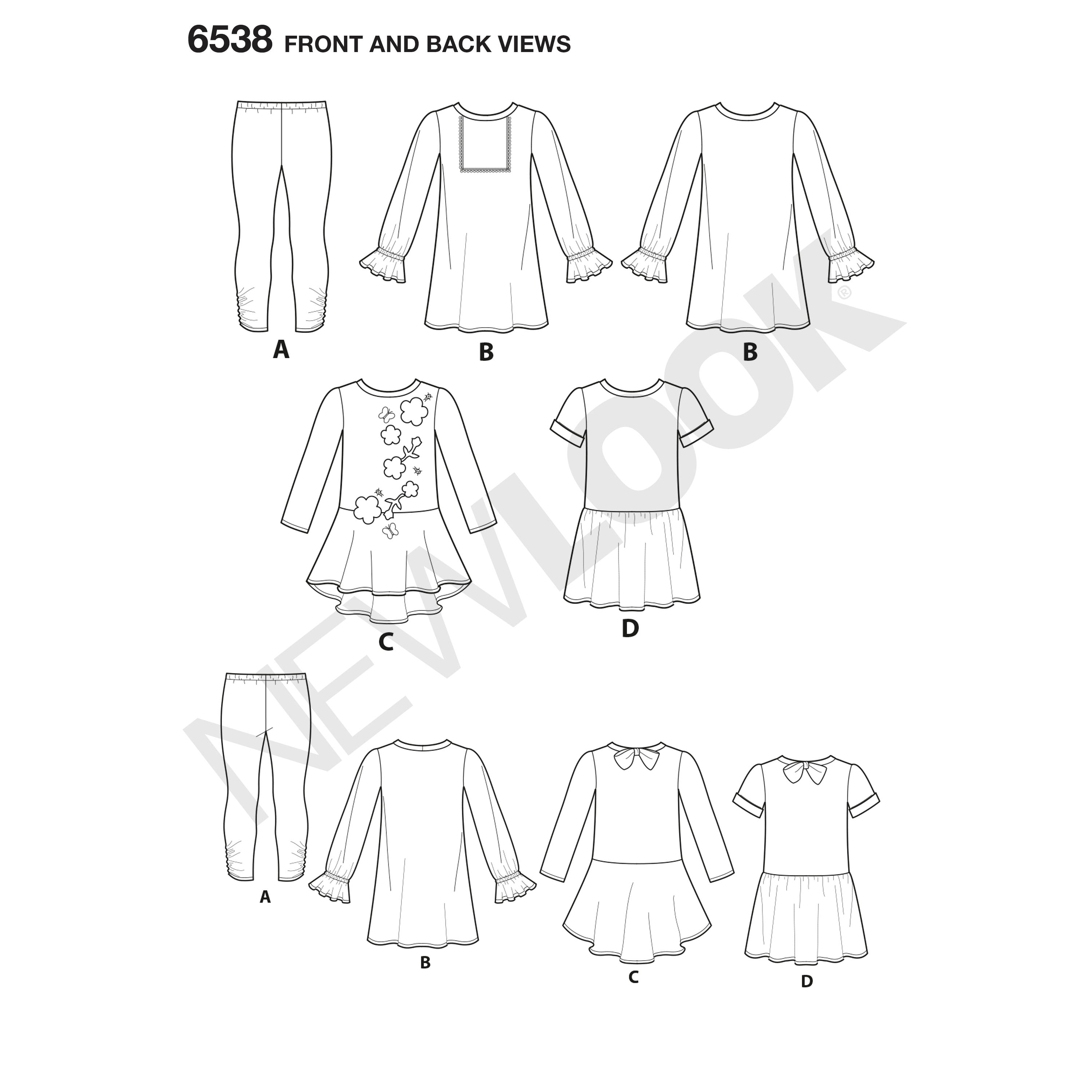 New Look Sewing Pattern 6538 - Child's Knit Leggings and Dresses