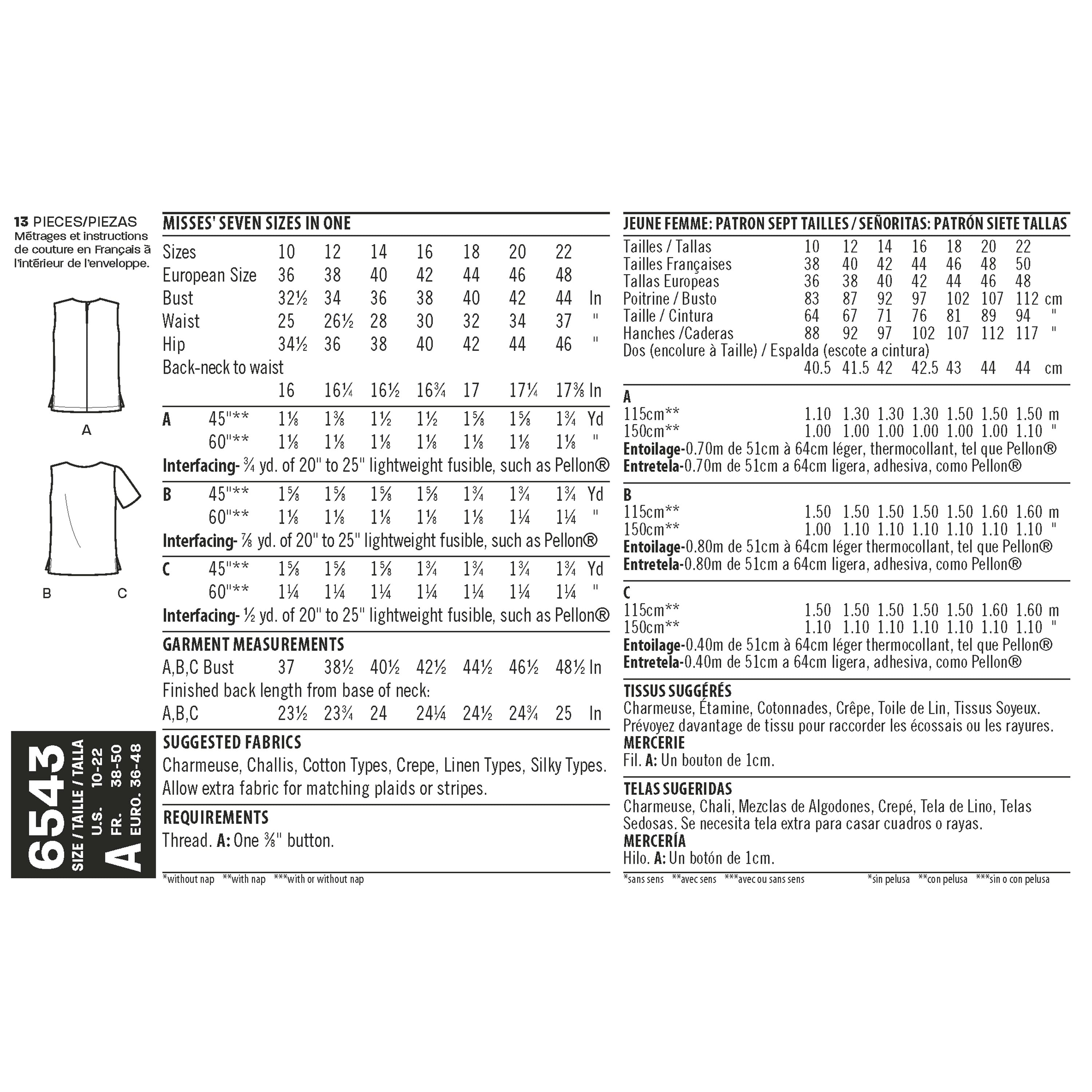 New Look Sewing Pattern 6543 - Misses' Easy Tops