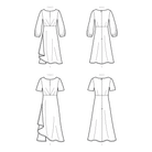 Misses' dresses in two lengths. Empire-waist seaming, with front tucks adding fullness at the bust. Skirts in two lengths have front drape detail. Short one long sleeves. Designed for wovens with good drape.
