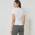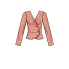 Misses' wrap tops with button closure, long sleeve or loose-fitting short sleeves and optional tie closure.