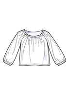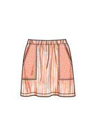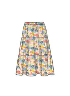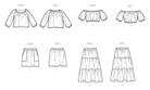 Learn to sew top stitching, gathering, and elastic casings with this pattern for girls. Pullover cropped or peasant style tops have elasticized neck and sleeves. Pull-on skirts have elasticized waist. View C mini skirt has contrast pockets. View D is a long-tiered skirt.