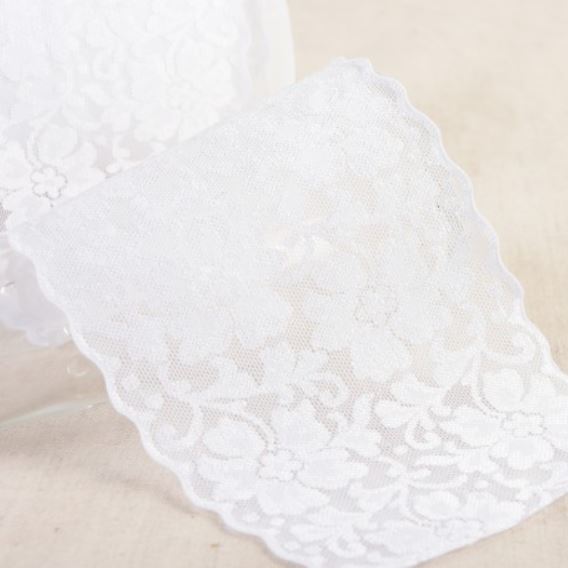 Finish off your garments with some soft stretch lace. This pretty floral-design lace is ideal for trimming on lingerie, headbands, leggings or even wedding items.