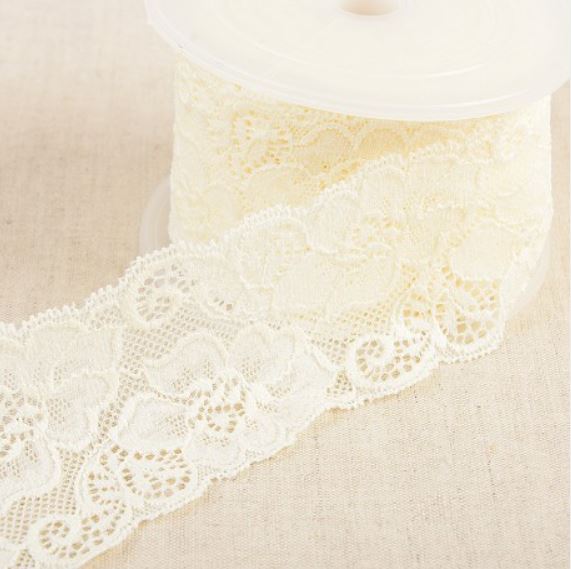 Finish off your garments with some soft stretch lace. This pretty floral-design lace is ideal for trimming on lingerie, headbands, leggings or even wedding items.