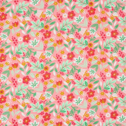 Happy Flowers Pink Glitter Cotton Jersey Fabric