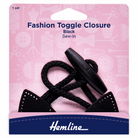 Finish off your project perfectly with a smart toggle closure. This set in classic black are ideal for coats and jackets, simply sew-in where desired. Features a faux leather fastener with pre-punched holes and wooden toggle.