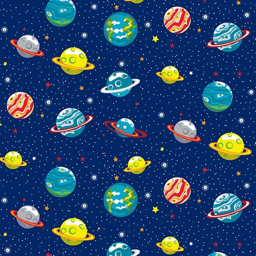 Henry Glass Blast Off Into Space - Planet Allover - 100% Cotton Fabric