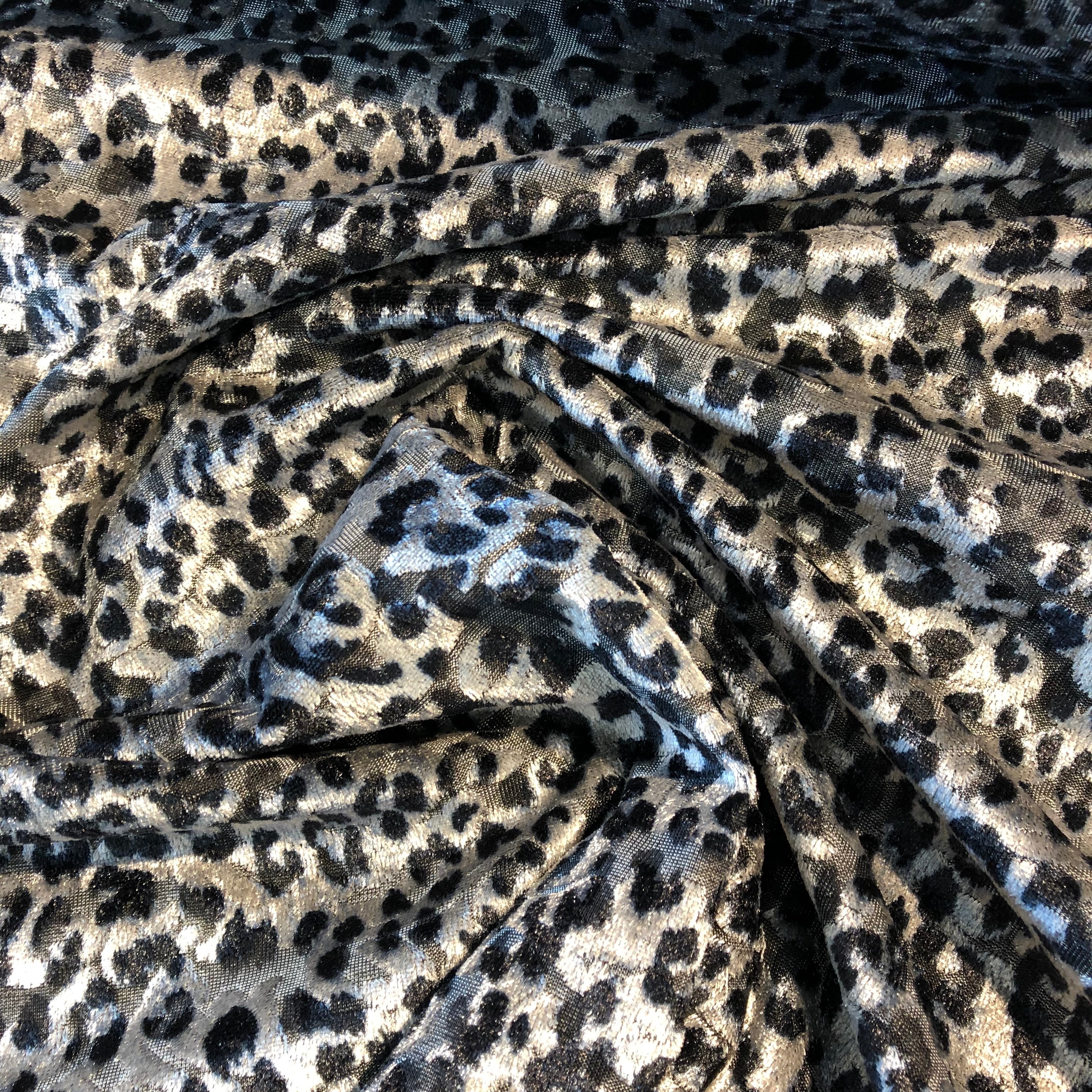 Make a knockout outfit with this gorgeous stretch velvet. It has a trendy leopard print design in a flocked detail, offering interesting texture and pattern as well as comfort and style. In a classic monochrome colourway, it pairs perfectly with any coloured accessory of your choice so it's great for basics like skirts as well as more fun items like dresses.- Composition: 97% polyester, 3% elastane