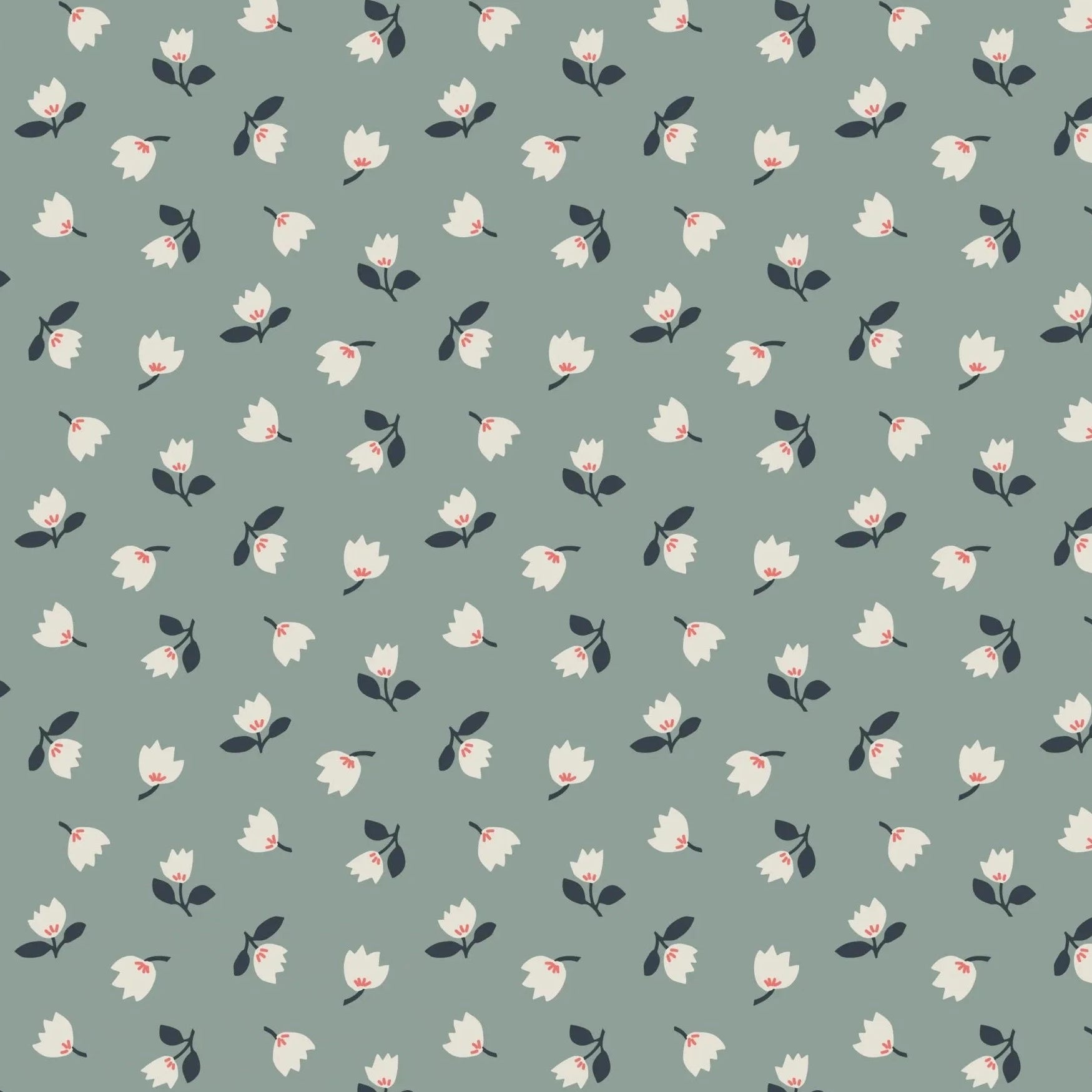 Lewis & Irene Folk Floral - Little Flowers Iced Sage - 100% Cotton Fabric