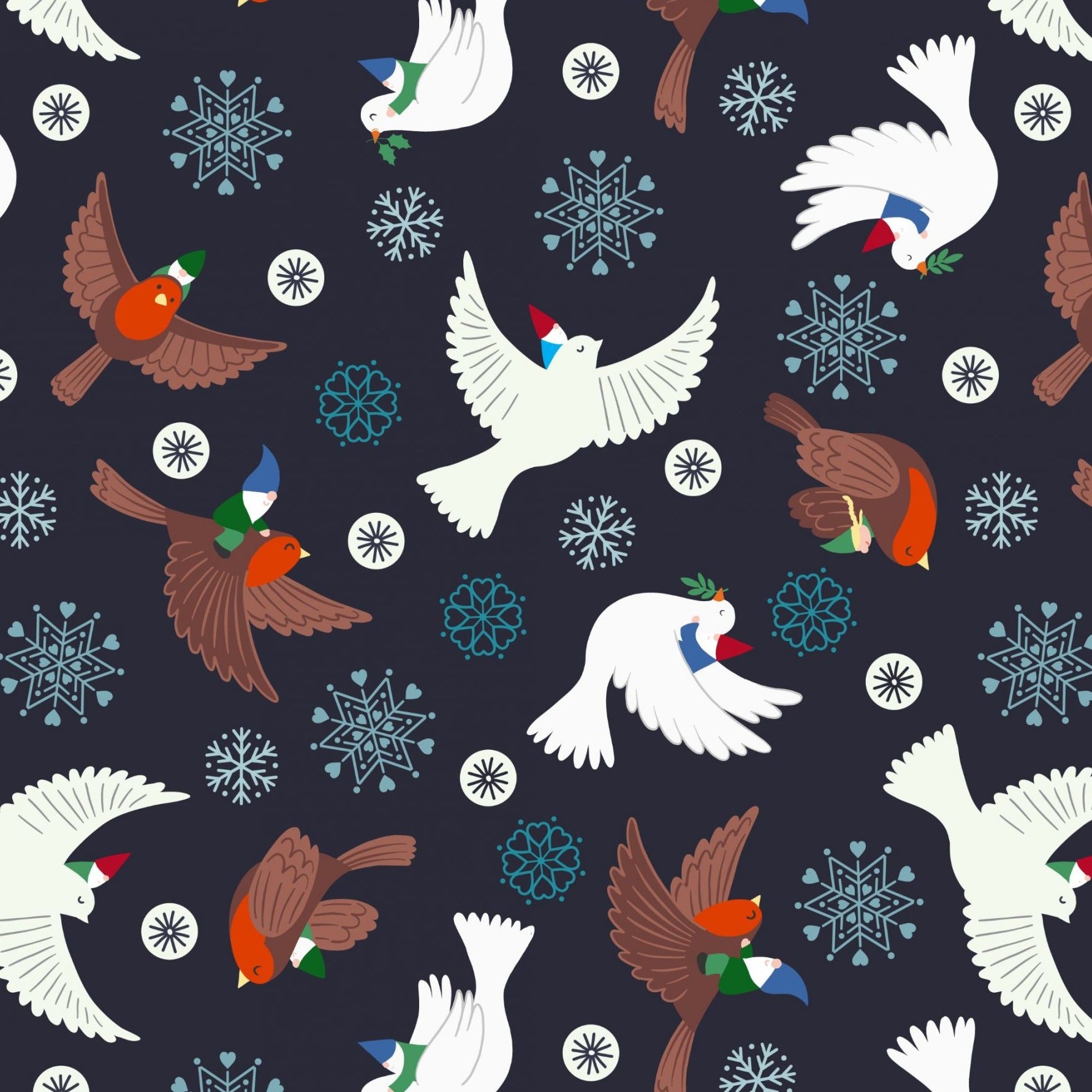 Discover a new kind of scandi collection with this extra special glow in the dark Christmas collection from Lewis and Irene. All the prints are finished with amazing glow-in-the-dark elements so when you switch the lights off, you'll still be able to see those cute festive designs. Cute tiny tomten (festive gnomes) climb aboard robins and winter doves in this fun festive design, riding them through the snowflakes like they're horses!