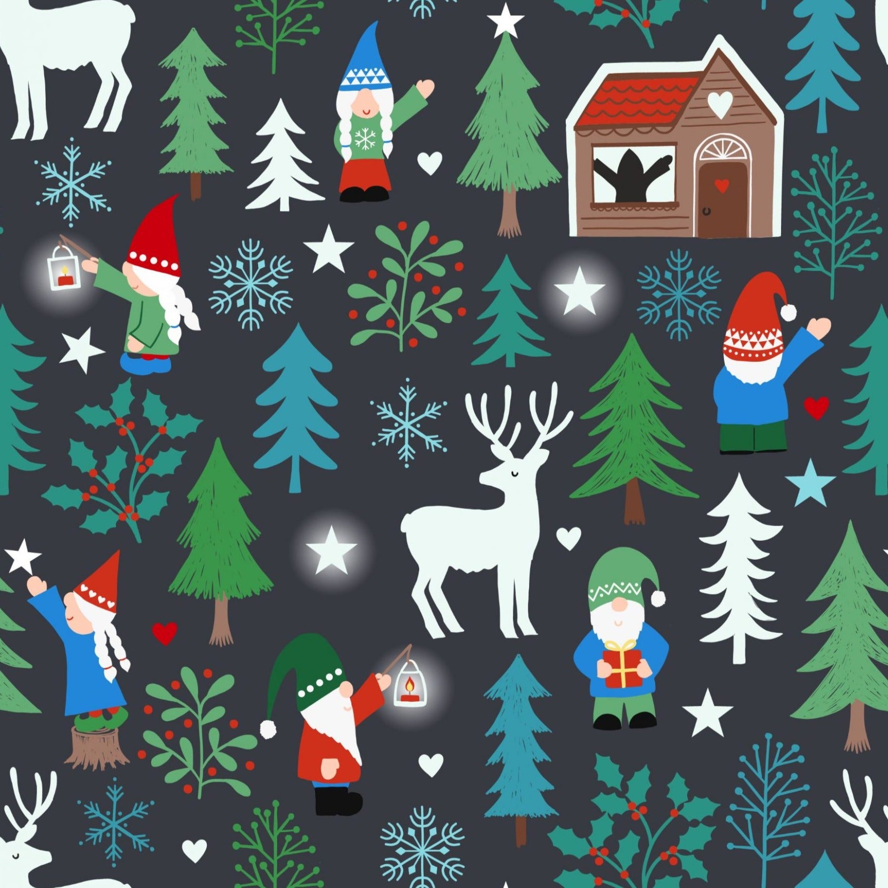Discover a new kind of scandi collection with this extra special glow in the dark Christmas collection from Lewis and Irene. All the prints are finished with amazing glow-in-the-dark elements so when you switch the lights off, you'll still be able to see those cute festive designs! Cute little tomten (festive gnomes) pop up here and there to wish you a Happy Christmas in this magical forest design, complete with Christmas trees, reindeer and falling snowflakes for the ultimate scandi forest scene.