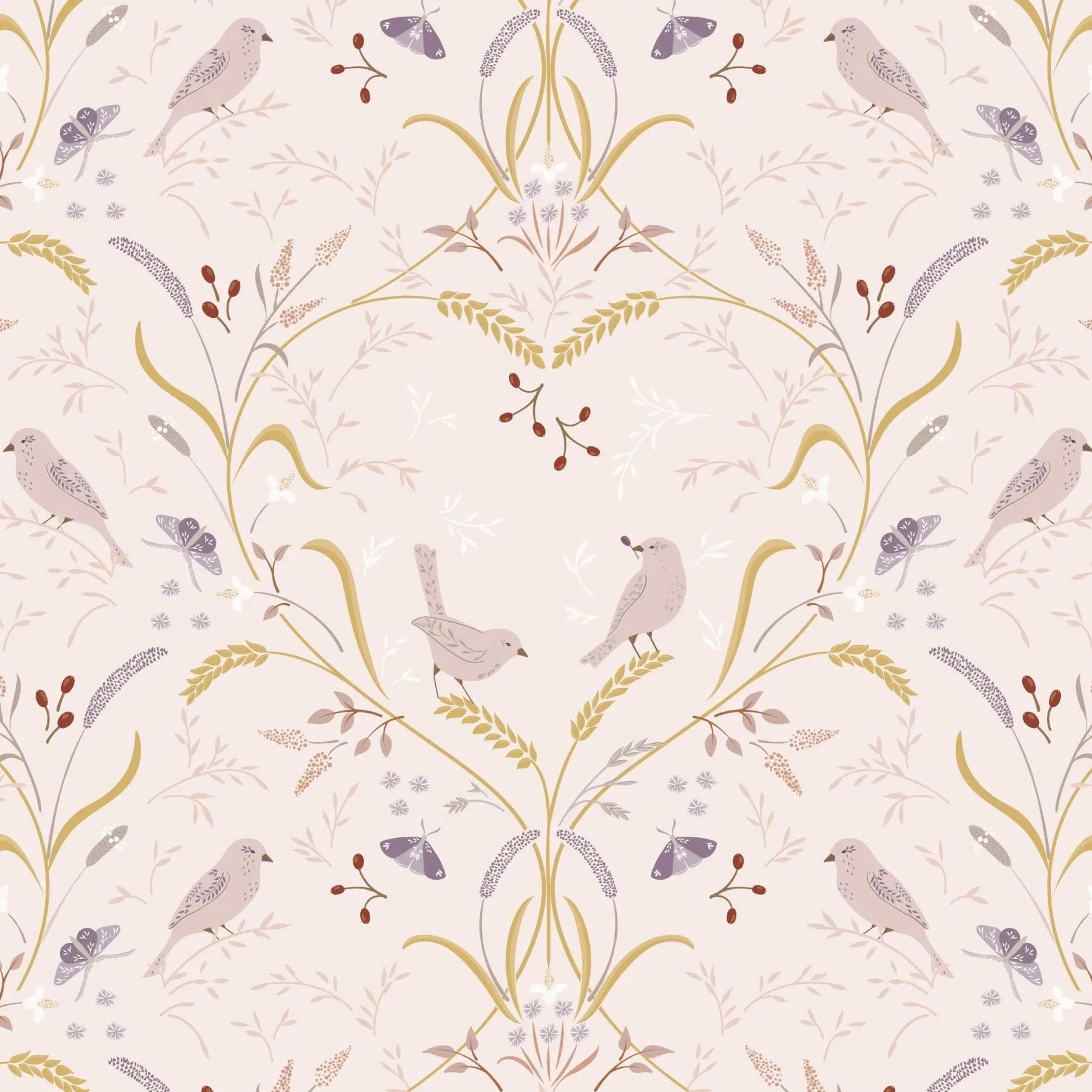 Lewis & Irene Meadowside - Bird by Bird Ecru Pink - 100% Cotton Fabric