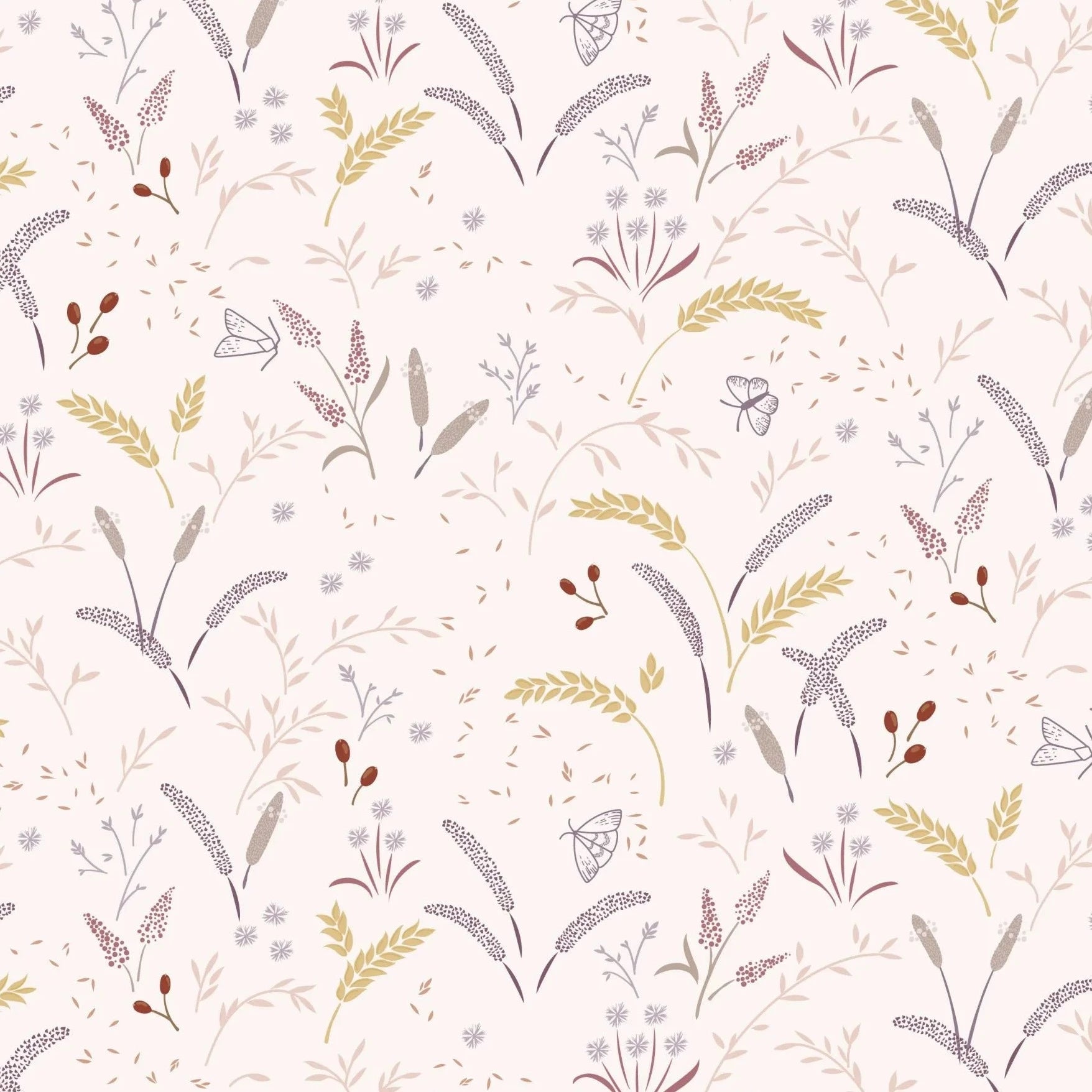 Lewis and Irene are back with another collection from surface pattern design Cassandra Connolly. This soft and muted set of prints is a gentle and romantic, in a calming colour palette of ecru and blush. This elegant print features gentle illustrations of the meadow plants, gently blowing in the wind.