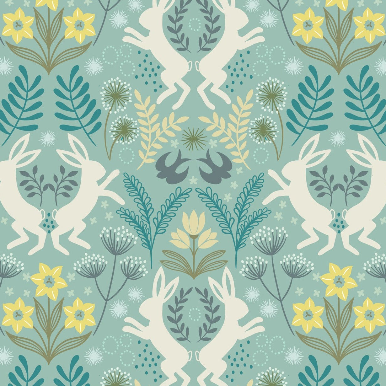 Lewis & Irene Spring Hare Reloved - Spring Hare Duck Egg - 100% Cotton Fabric
