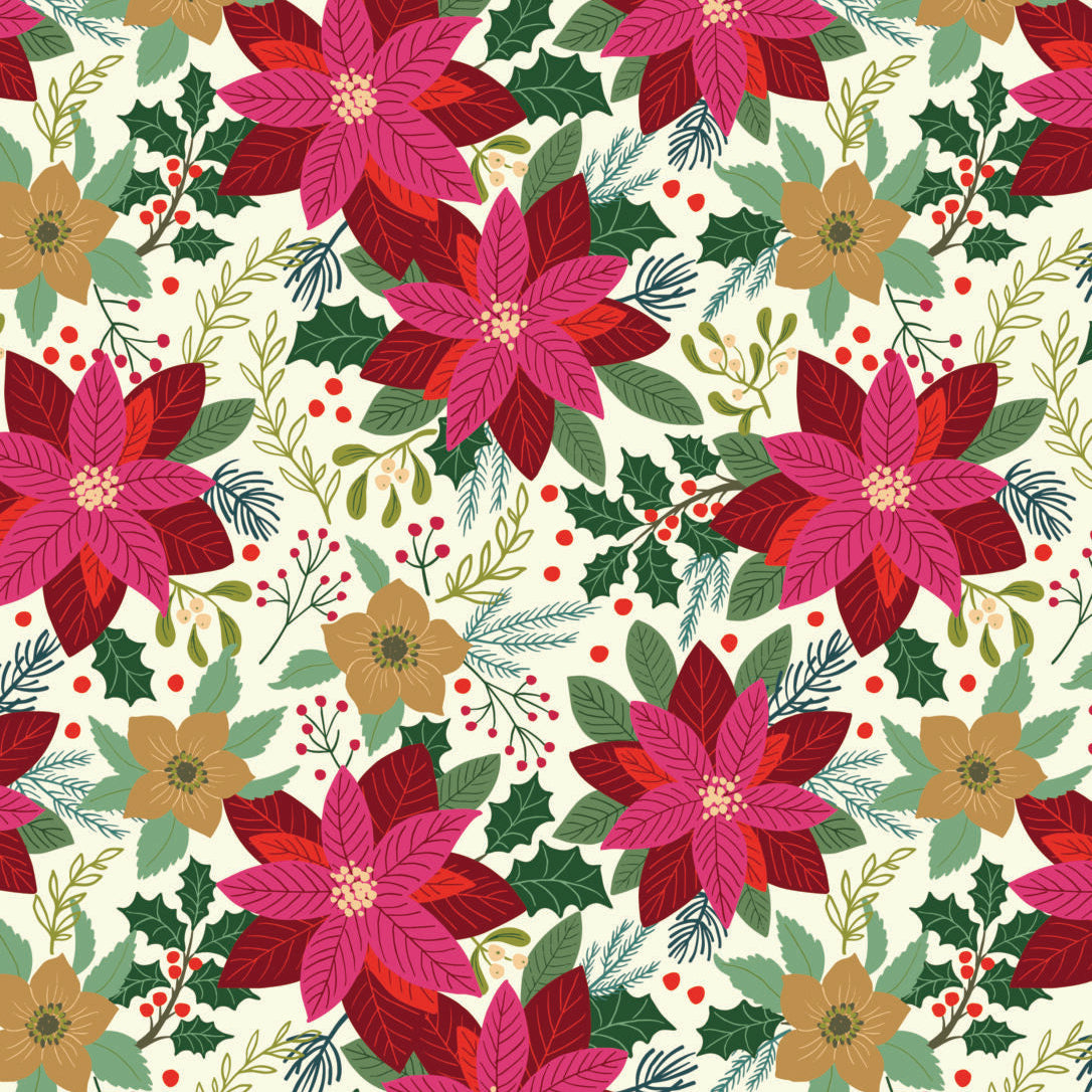 Lewis & Irene x Stuart Hillard 'All is Bright' - Poinsettia Cream - 100% Cotton Fabric
