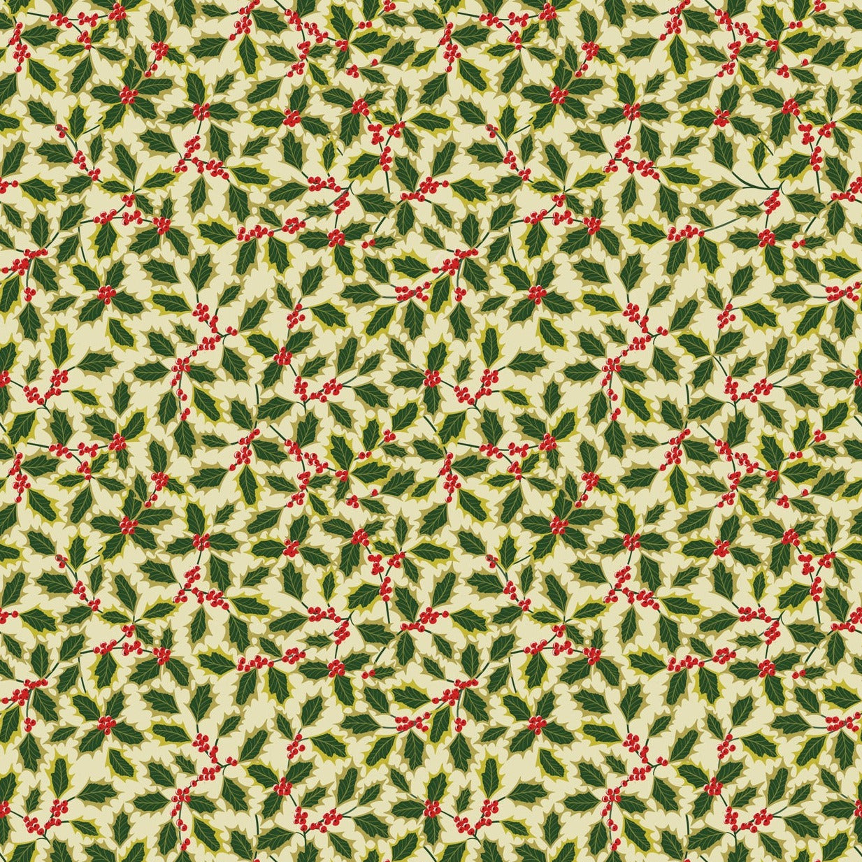 Lewis & Irene Yuletide - Holly Cream (metallic) - 100% Cotton Fabric