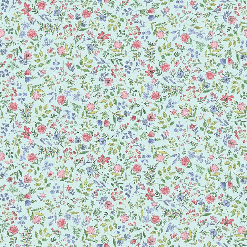 Makower Afternoon Tea - Sugar Flowers Blue - 100% Cotton Fabric