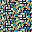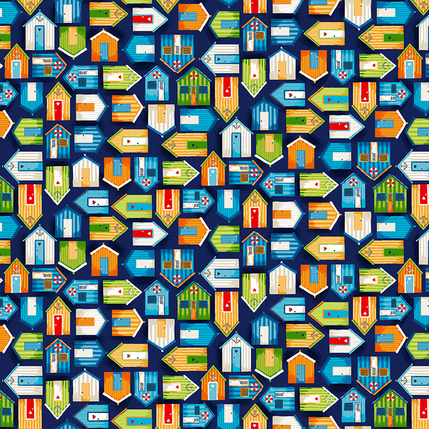 Makower Beside the Sea - Beach Huts Dark Blue - 100% Cotton Fabric