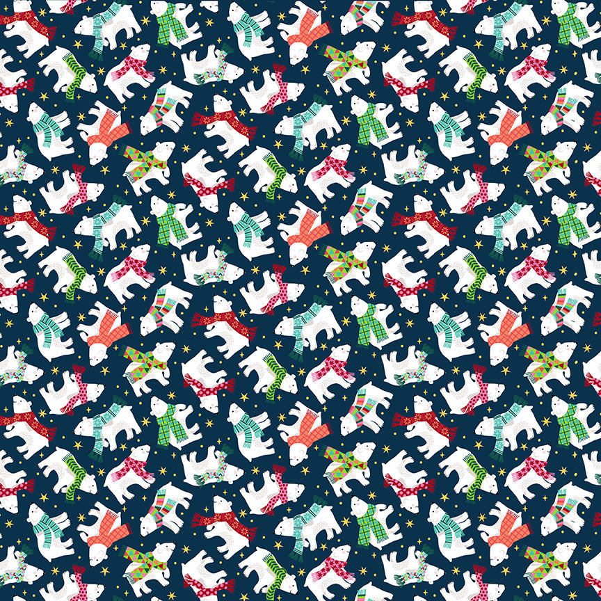 Step into a Christmas wonderland full of fun, when you hop aboard the Santa Express... let this train take you to a world full of the joy of Christmas, with polar bears and snowmen showing you around, and of course jolly Santa to say hello too! This collection is full of friendly Christmas characters the kids will love - including this novelty polar bear print, with them all dressed up in their colourful scarves. The print is offset with glittering gold metallic, for that extra festive touch...