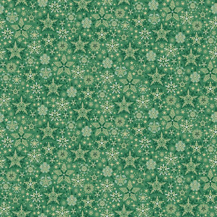 Makower Good Tidings - Star Green (metallic) - 100% Cotton Fabric