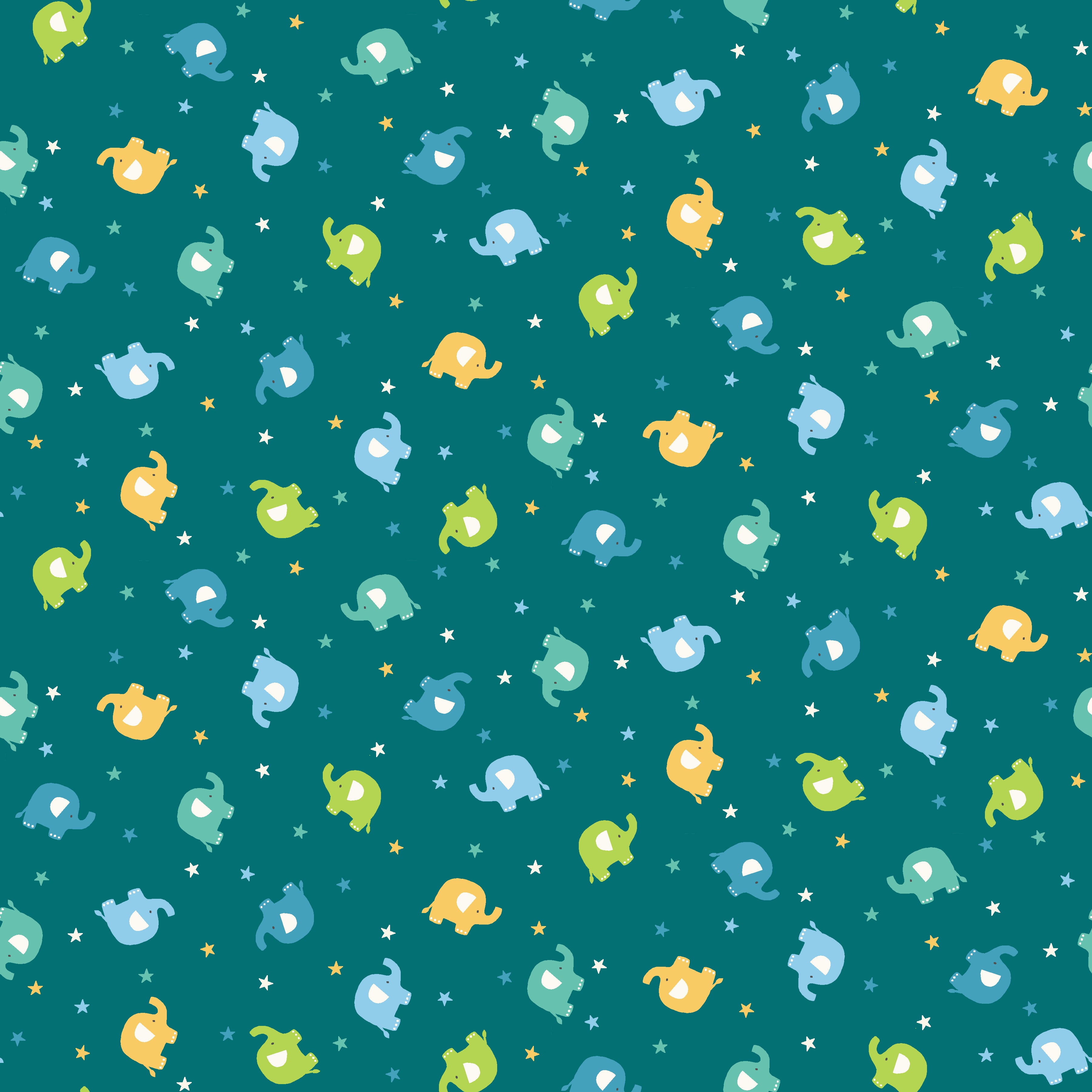 In the Jungle is a the latest baby-friendly collection from Makower, perfect for the nursery. In a palette of blue, pink, green and yellow, it's full of friendly jungle animals like elephants and giraffes - perfect for all baby projects, from cot quilts to bibs, cushions to playmats. This cute print features a teeny tiny elephants mixed in with little stars, which is ideal for smaller sized projects.