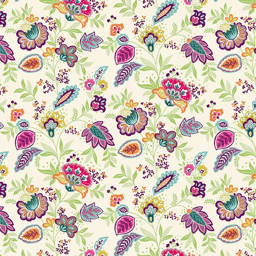 Makower Jewel Tones - Sarasa Cream - 100% Cotton Fabric