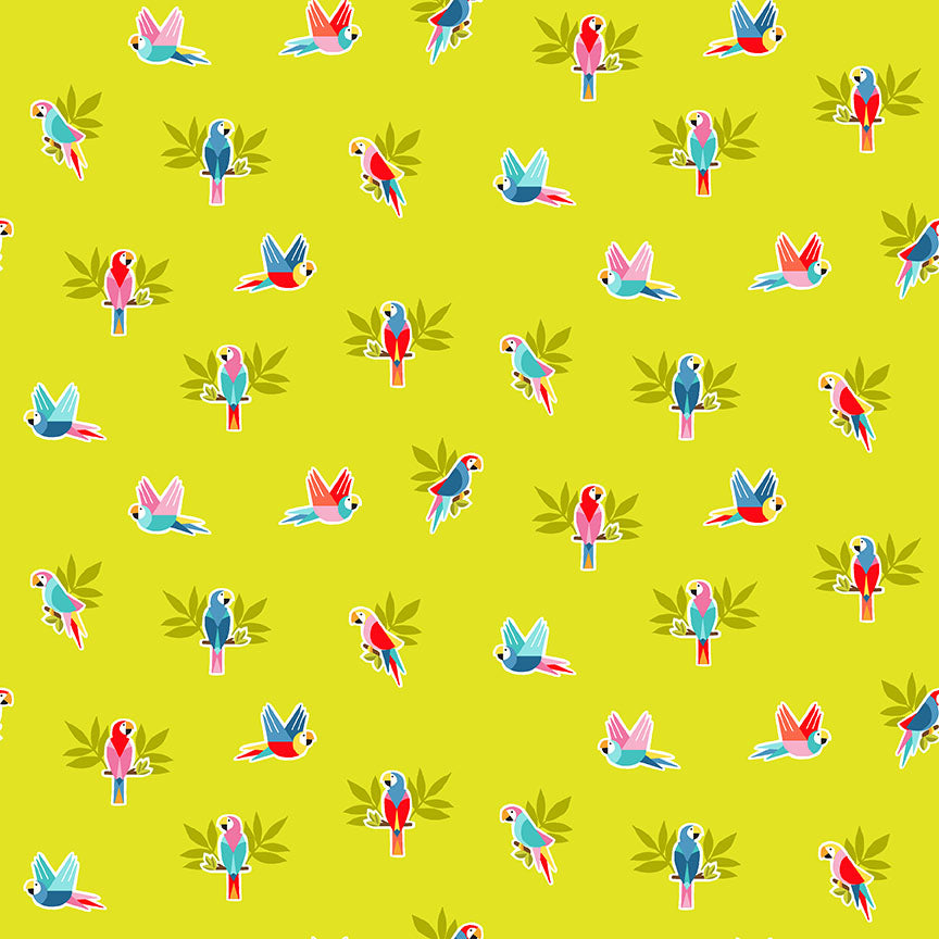 Makower Pool Party - Parrots Green - 100% Cotton Fabric