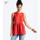 Women’s tops with ruffle includes mini dress, tunic, top and cropped top without ruffle. Tops have cut in sleeveless or cap sleeves and button with elastic loop closure at back neck opening. This New Look Sewing Pattern is easy to sew.