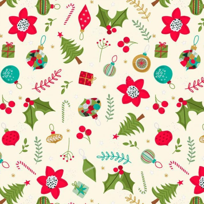 Capture the essence of Christmas with this classic seasonal collection from P&B Textiles. This modern yet fun notions print is full of Christmas tree paraphernalia, from baubles and candy canes, to presents and berries - and of course, mini trees too! Ideal for quilting, patchwork, dressmaking, bags, accessories and more!