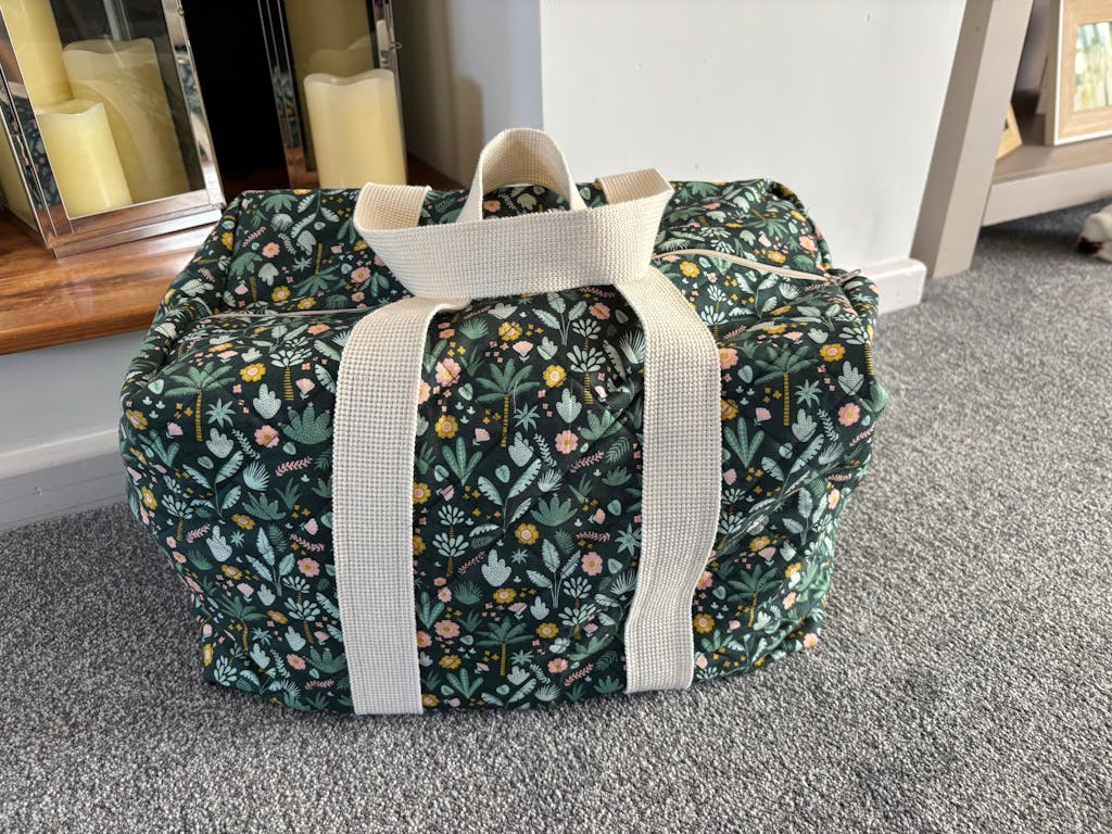 Travel in style with this cute duffle bag! Finished in classic style, it features a quilted outer fabric, fully lined interior and durable webbing handles - plus there's plenty of space for a weekend's worth of outfits. In this project, you'll learn how to quilt your own fabric as well as sew a simple zip.