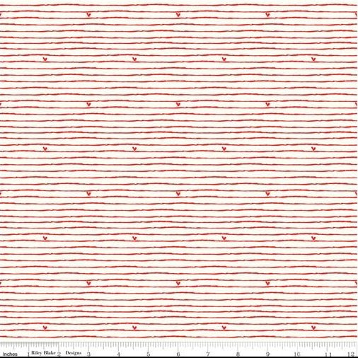 Say it from the heart with this heartfelt collection of designs from Riley Blake. This simple stripe design is as sweet as it is simple, with a lovely hand-drawn stripe and tiny little hearts. The pared-back red and white colour palette is perfect for a two-colour design, or mix with bolder shades like black and grey for added colour. Ideal for everything from quilts and patchwork projects, to accessories and clothing.