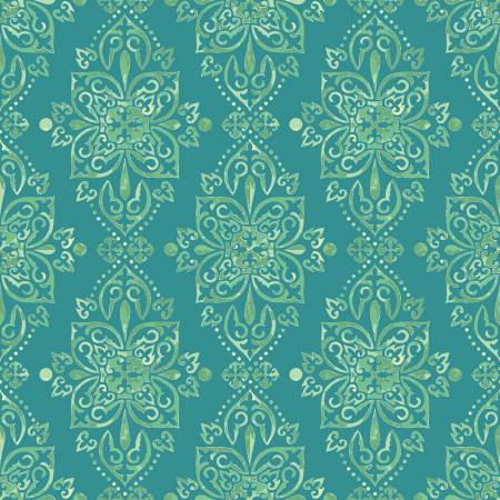 Riley Blake Hampton Garden - Damask Teal - 100% Cotton Fabric